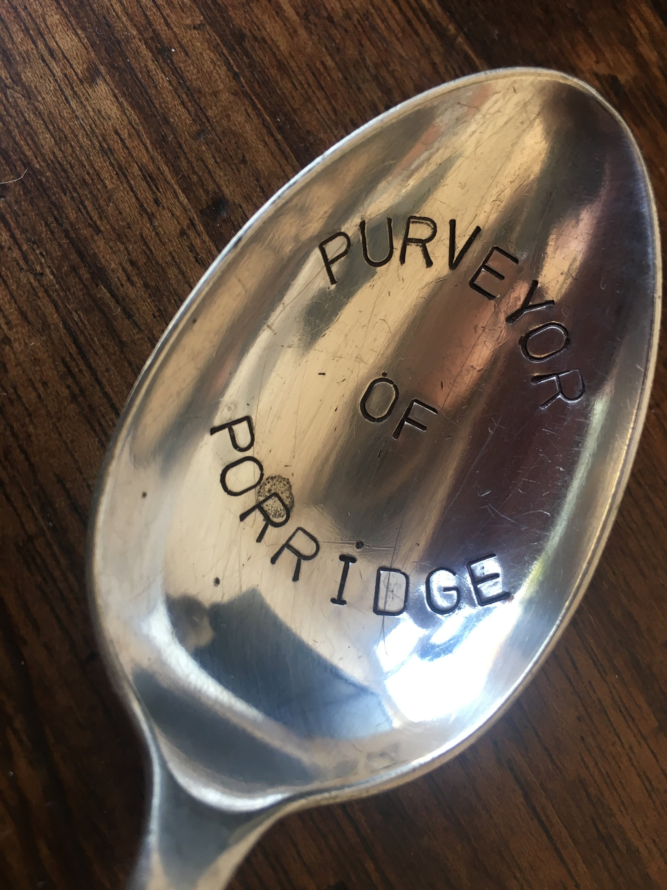 Handmade using a antique desert spoon hand made by me . purveyor of porridge handle will vary from o...