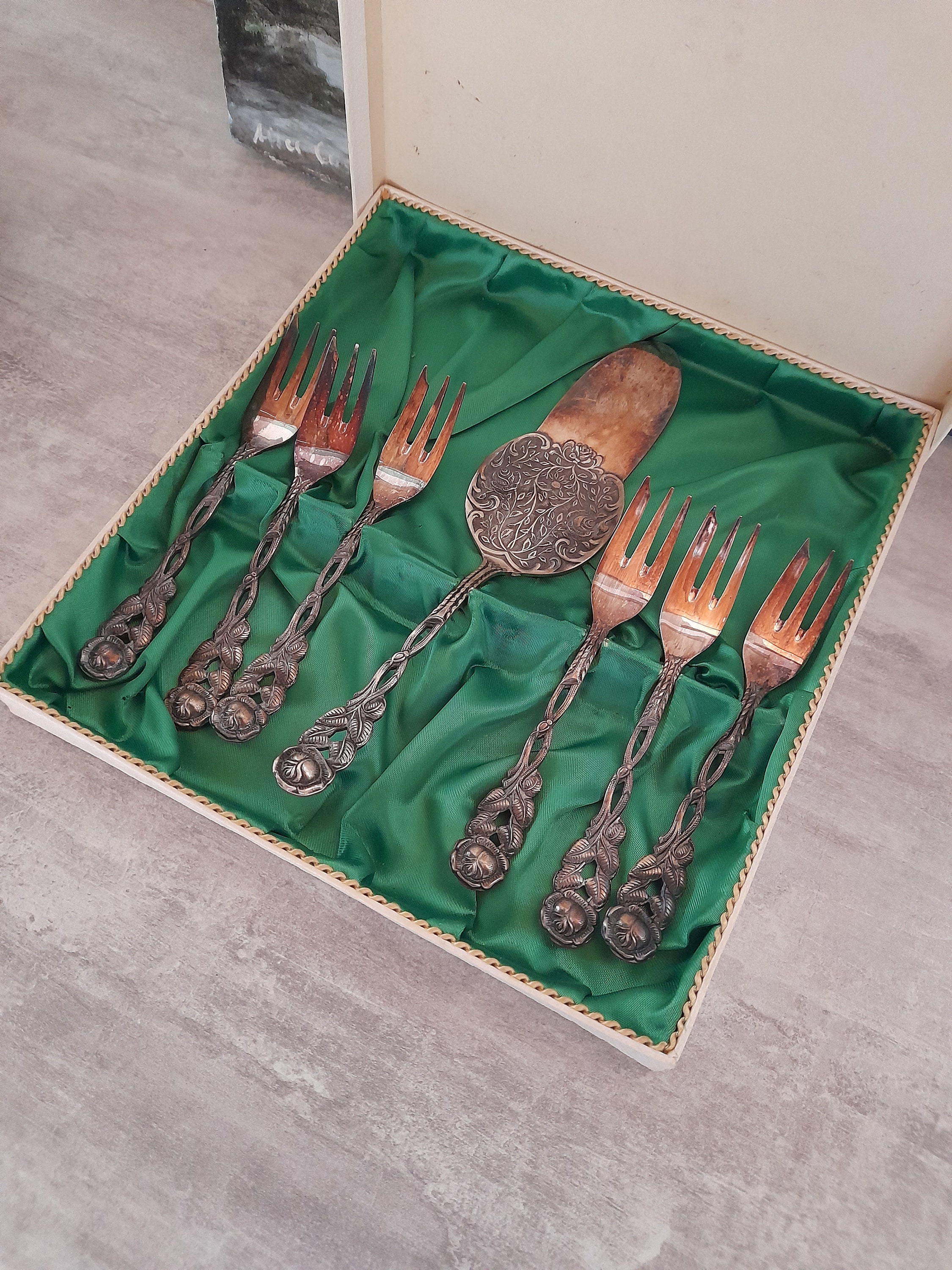 Cake/dessert forks and slice - Vintage French boxed set of 6 pretty...
