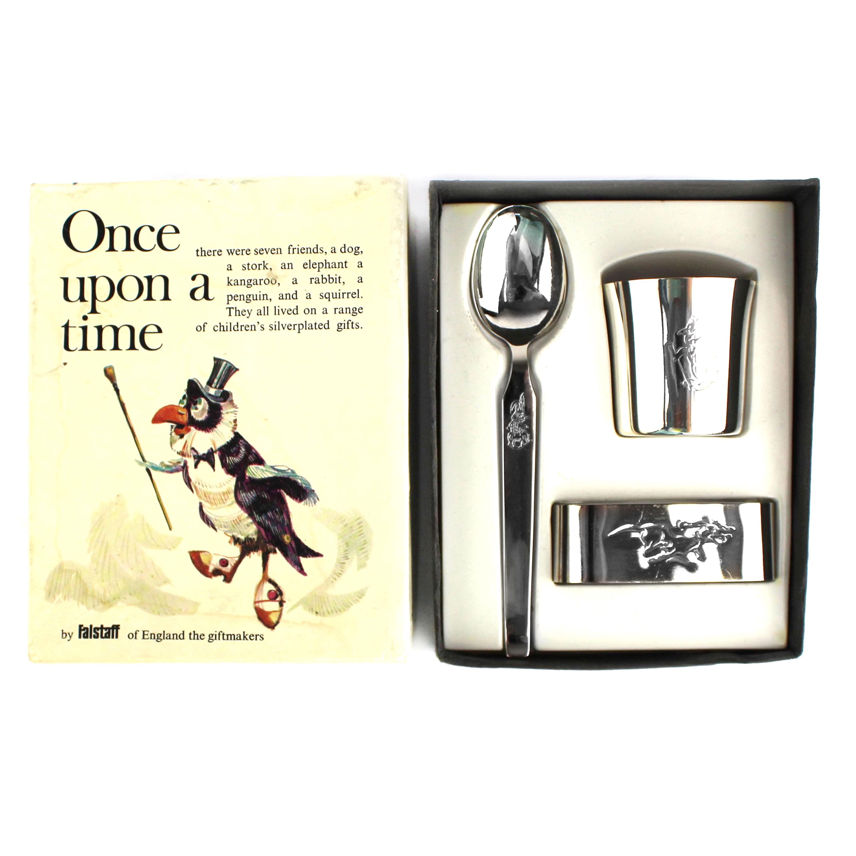 Elegant and unique silver plated 3-piece children's set by the English brand Falstaf, produced in th...