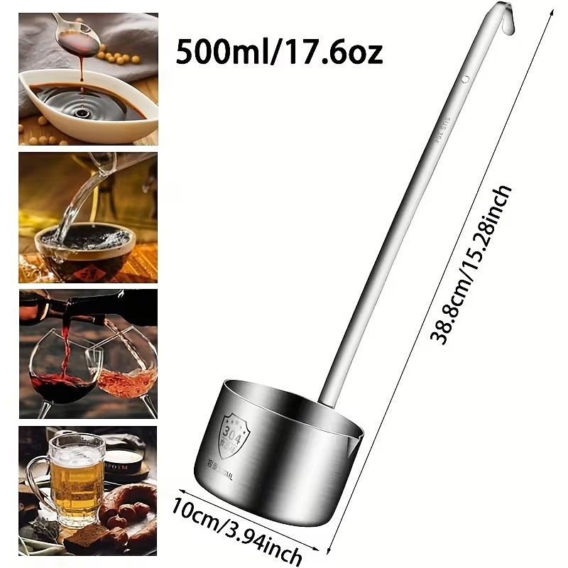 Stainless Steel 304 Long Handle Spoon with Hook - 1/4/8/17oz Wine D...