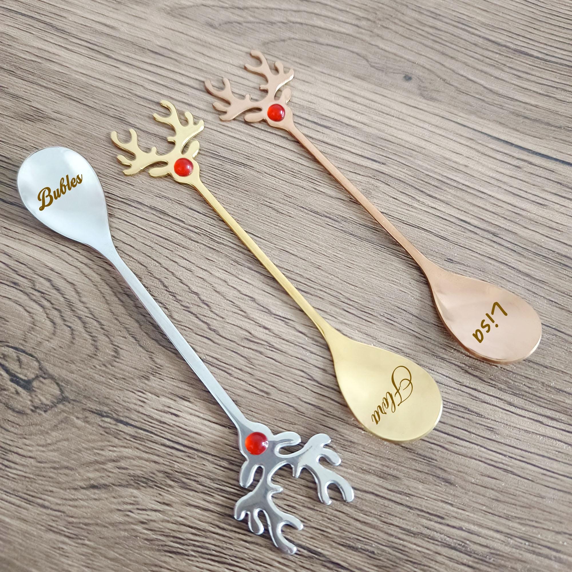 Customized Christmas Spoons, Reindeer-themed Spoons, Christmas Gift...