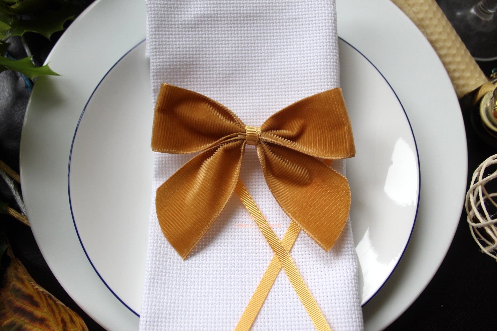 Velvet bow napkin ring/grosgrain velvet bow/velvet bow/pose, red, b...