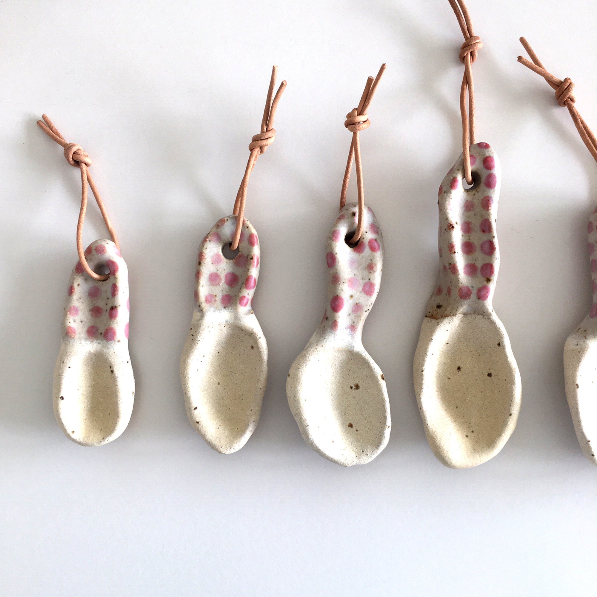 Clay spoons, Handmade spoons, Stoneware spoons, White Red pink Kitchen decor, Sugar spoons, Leather ...