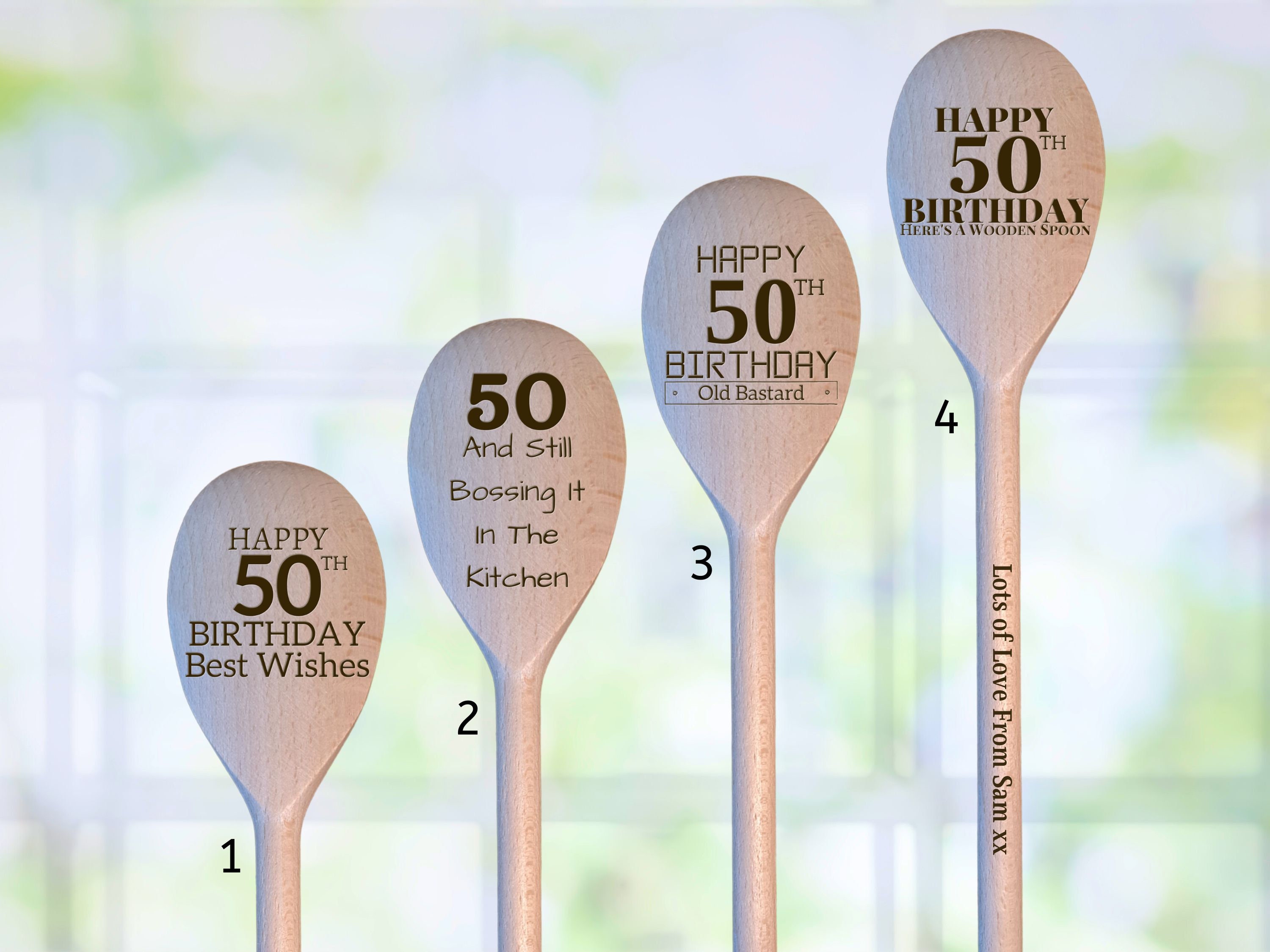 Personalised 50th Birthday Milestone Wooden Spoon Gift - Engraved B...