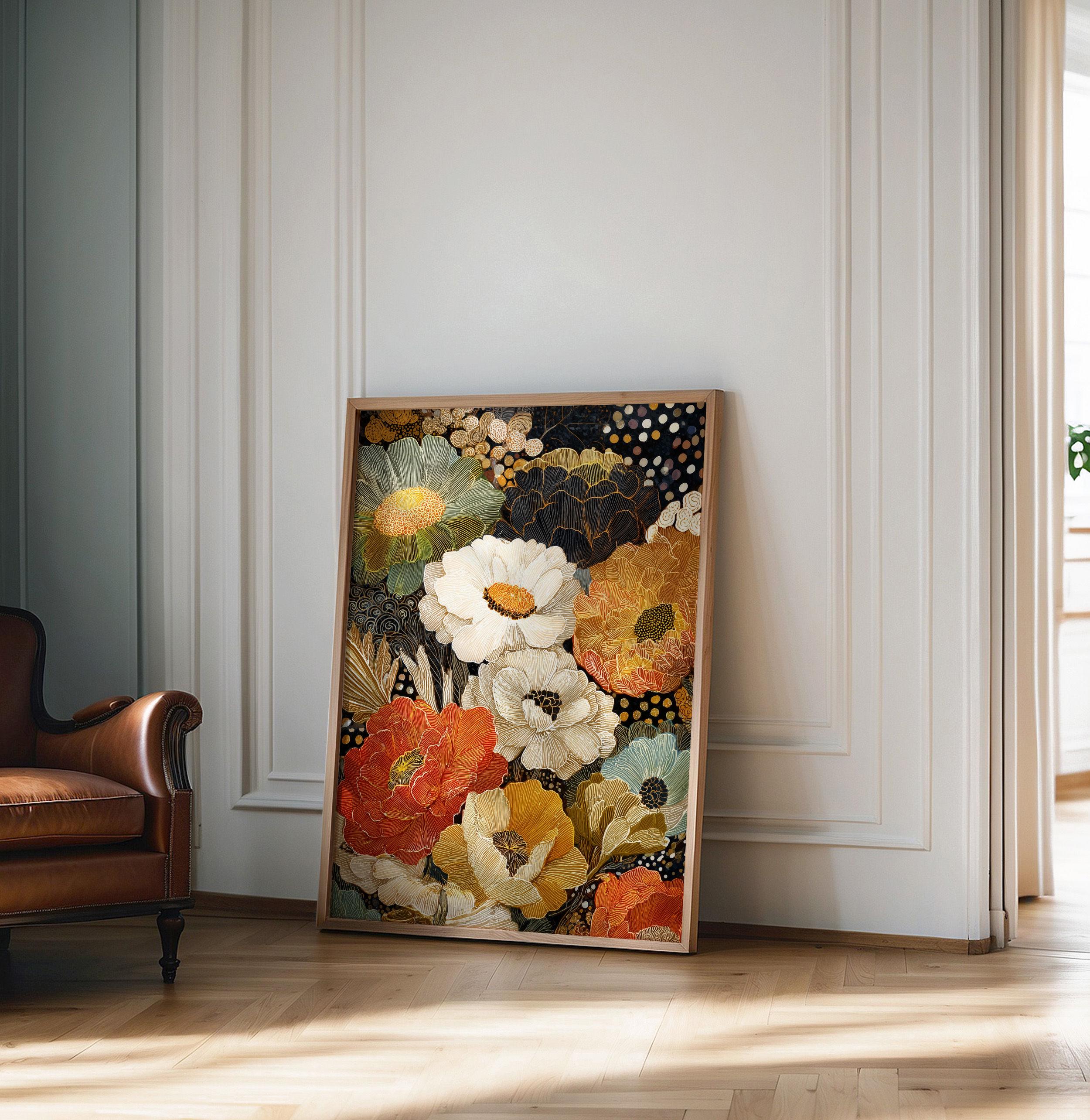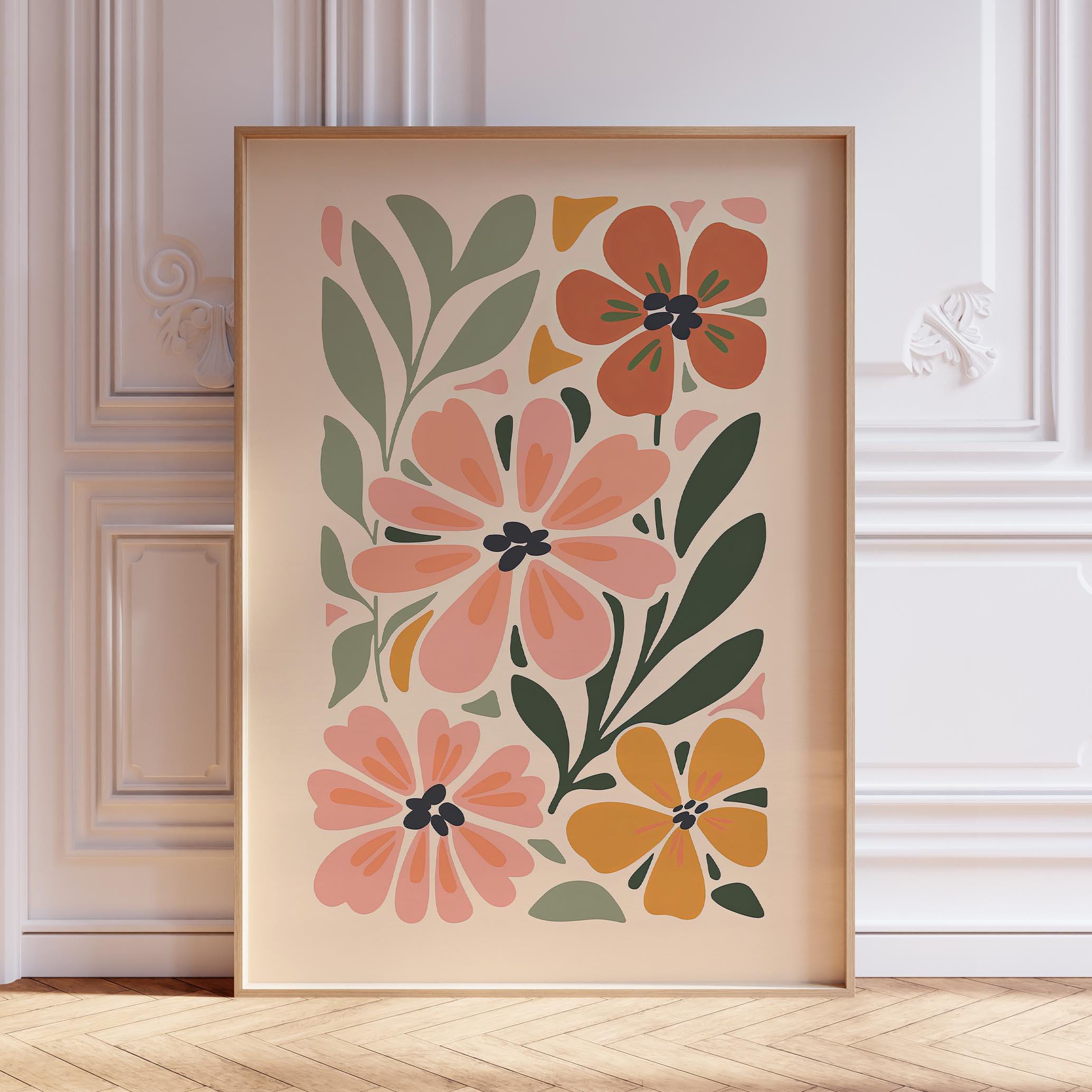 Retro Floral Print, Flower Market Print, Terracotta Wall Art, Retro...