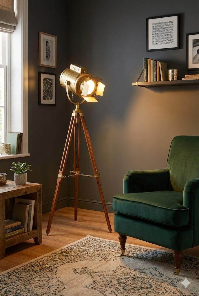 Vintage Brass Tripod Floor Lamp | Studio Spotlight Light