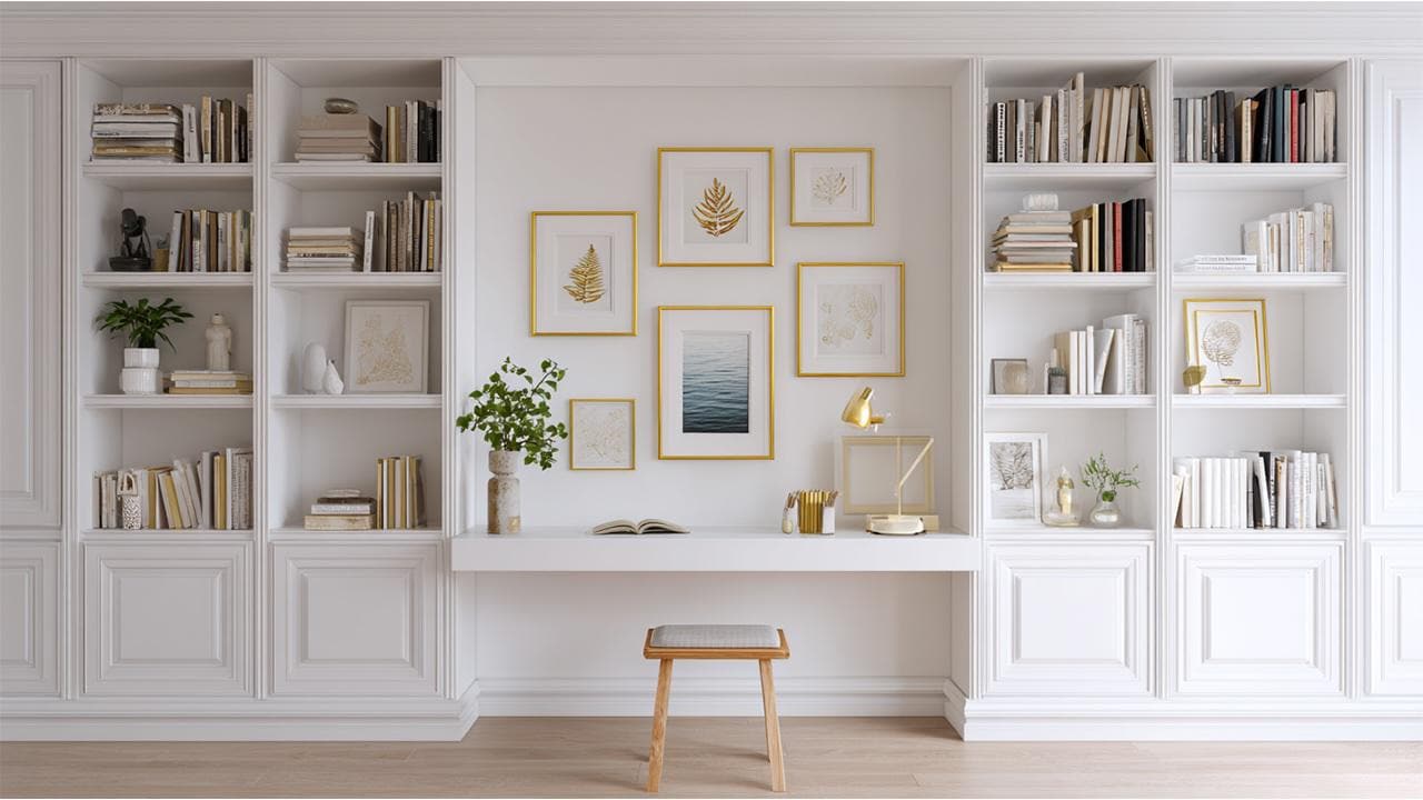 Neutral Zoom Background Modern Aesthetic Modern Home Office Wall Sh...