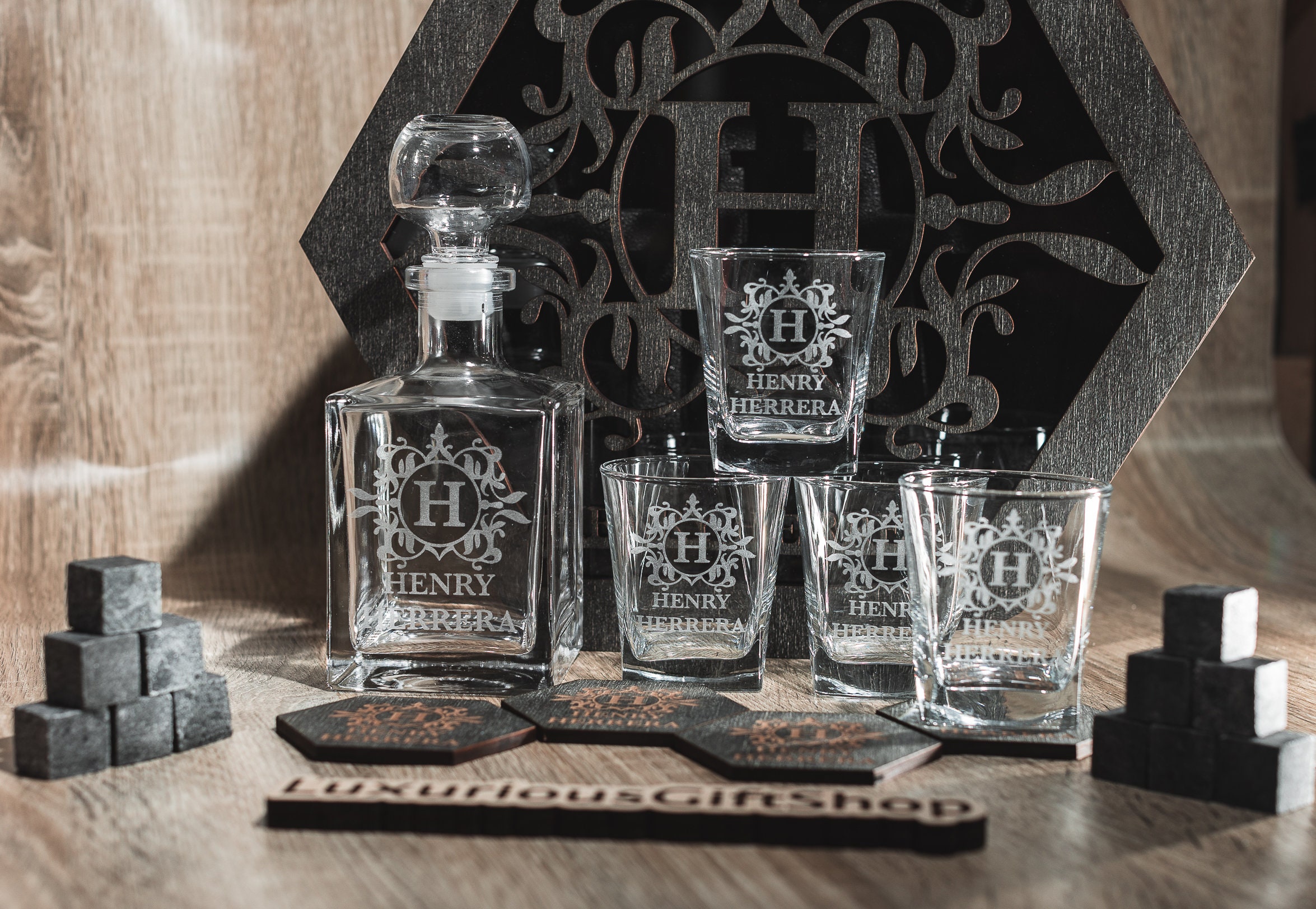 Whiskey Decanter Set, Whiskey Glass, Engraved Decanter, Whiskey Gla...