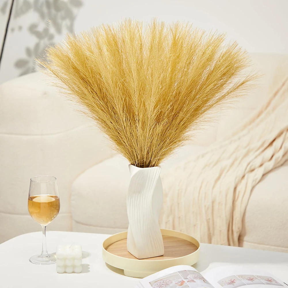 55cm Gold Fluffy Faux Pampas Grass Wall Decor Reed Vase Fillers Party Table Decorations Room Home De...