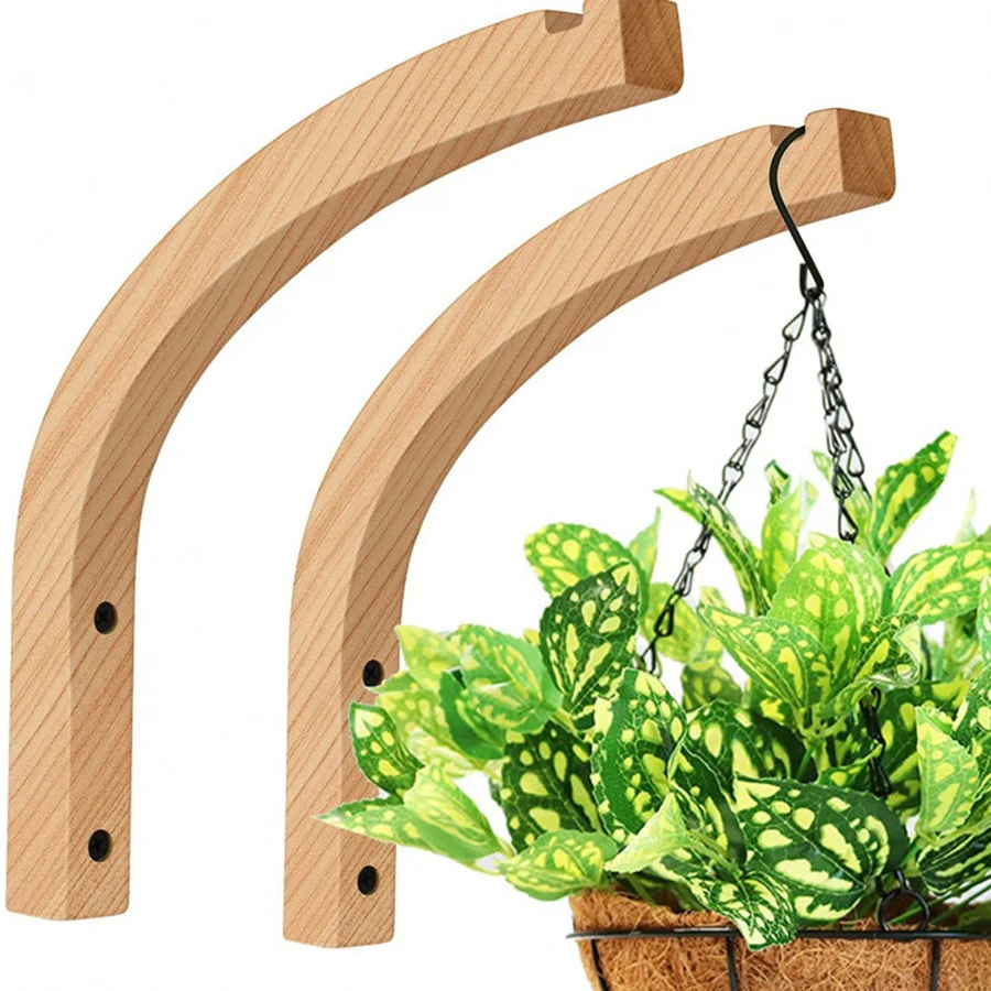 Natural Wood Wall Plant Hangers Hanging Flower Pot Hook Flower Brac...