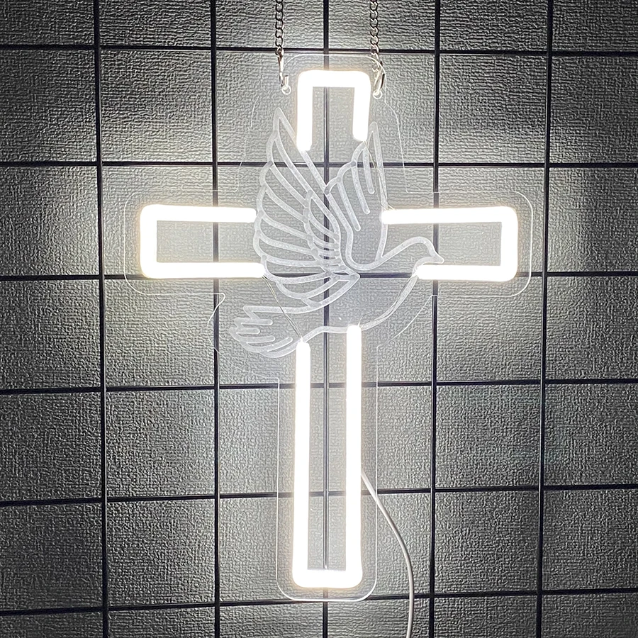 Cross Neon Sign Jesus Neon Lights Signs LED Light Sign for Wall Dec...