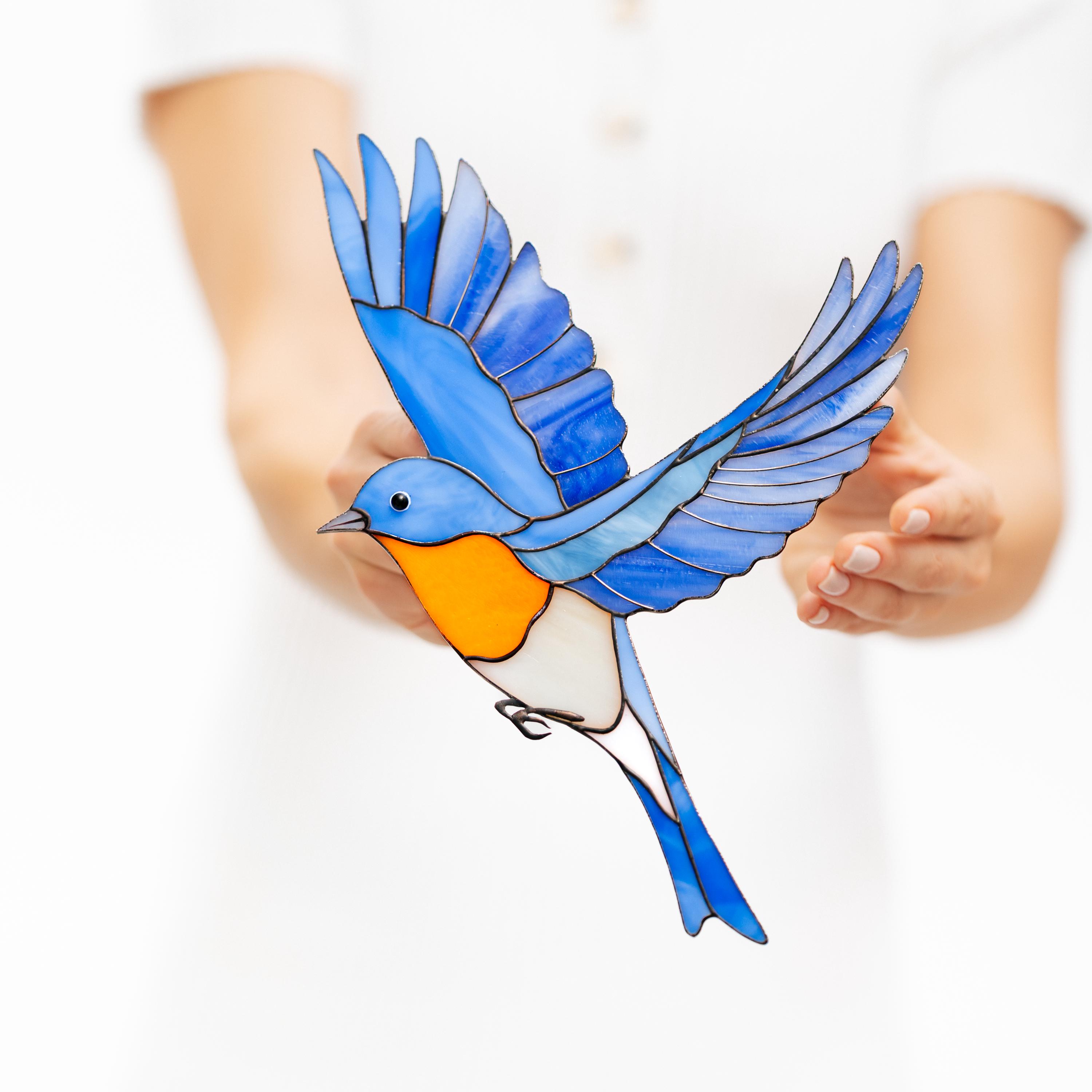 Bluebird Stained Glass Bird Window Hanging - Mother's Day Gift for ...