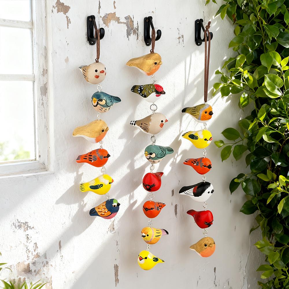 Hand-painted wooden bird wind chime pendant - A cute animal decorative pendant This is a string of h...