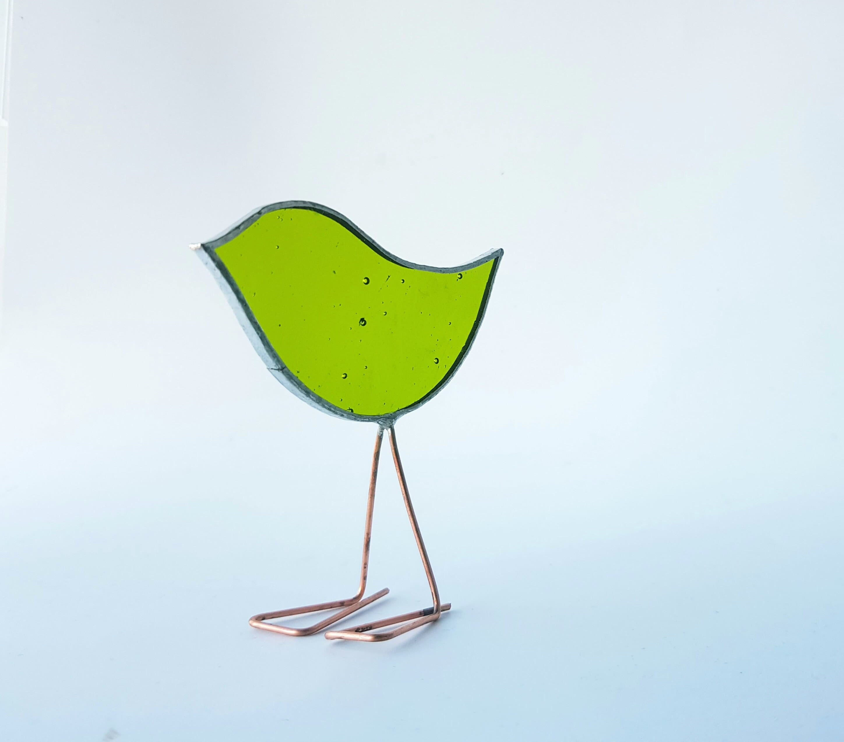 Green stained glass bird ornament hand made using the copper foil technique. Lovely green glass with...