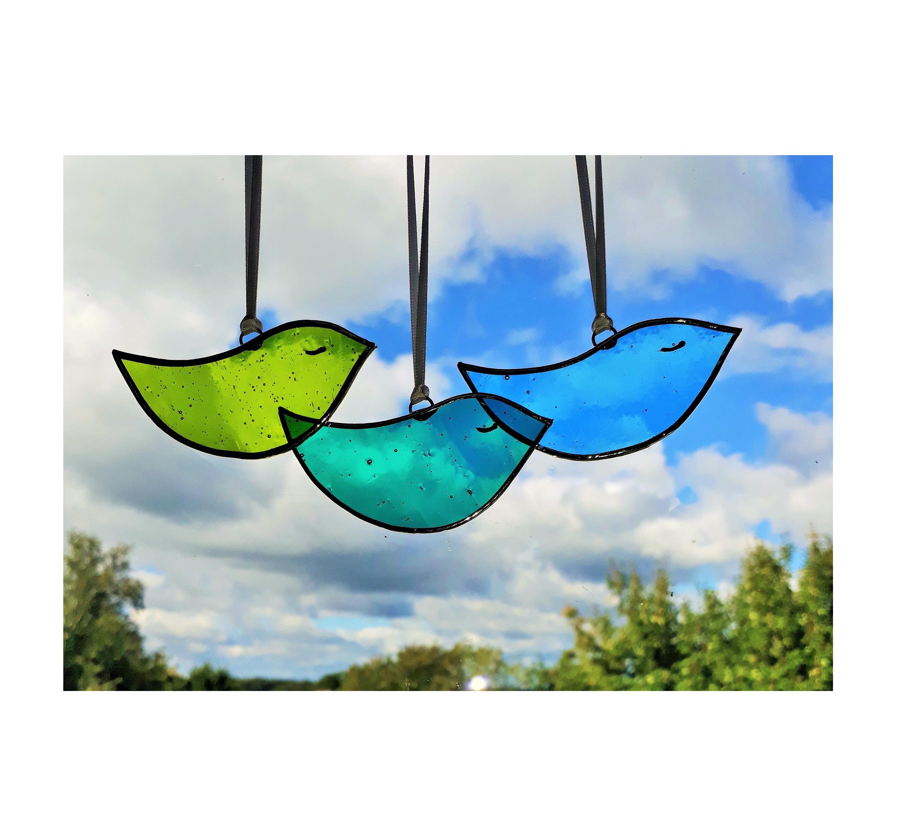 3 Stained glass bird suncatchers, three little birds, glass birds, ...