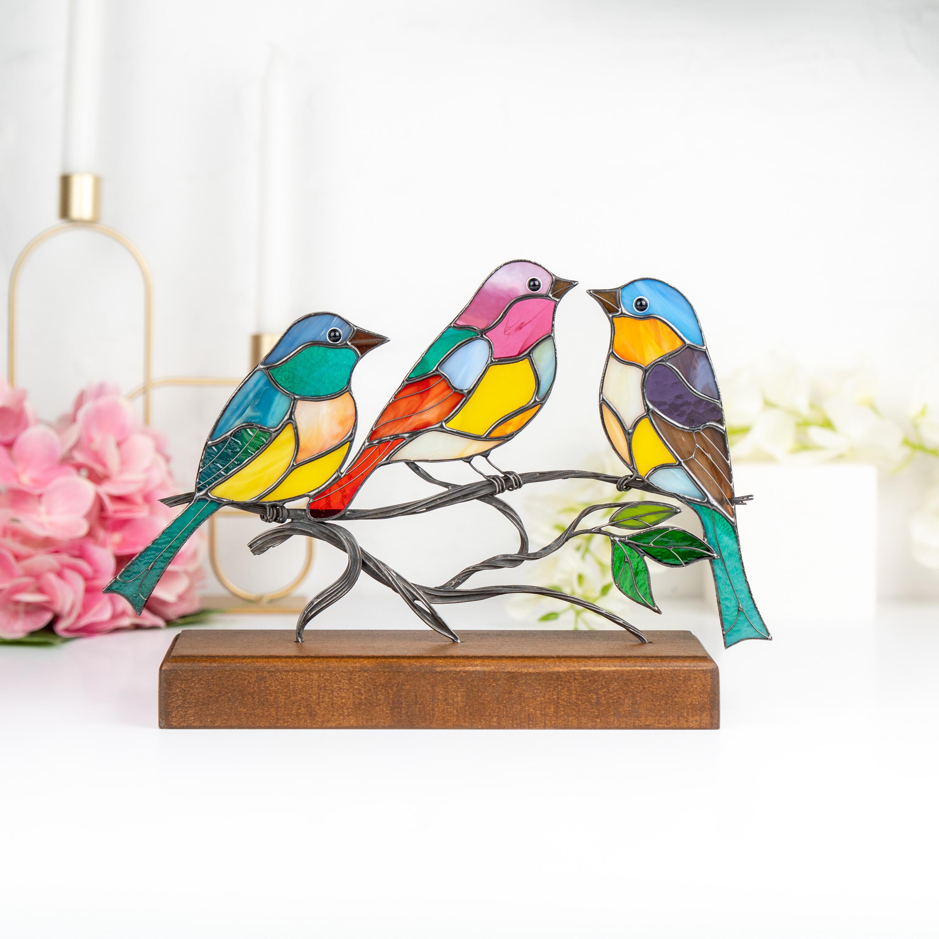 Add color and creativity to your space with this stained glass birds panel A perfect gift for bird l...