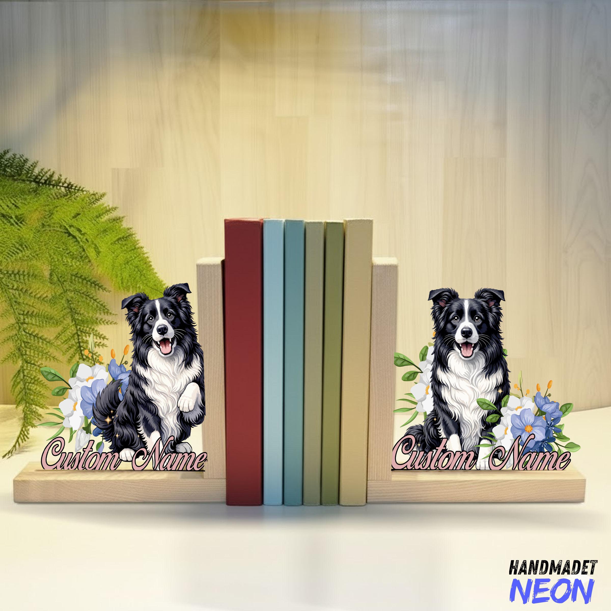 Custom Border Collie Bookends, Personalized Border Collie Book Holder Decor, Dog Book Ends, Dog Love...