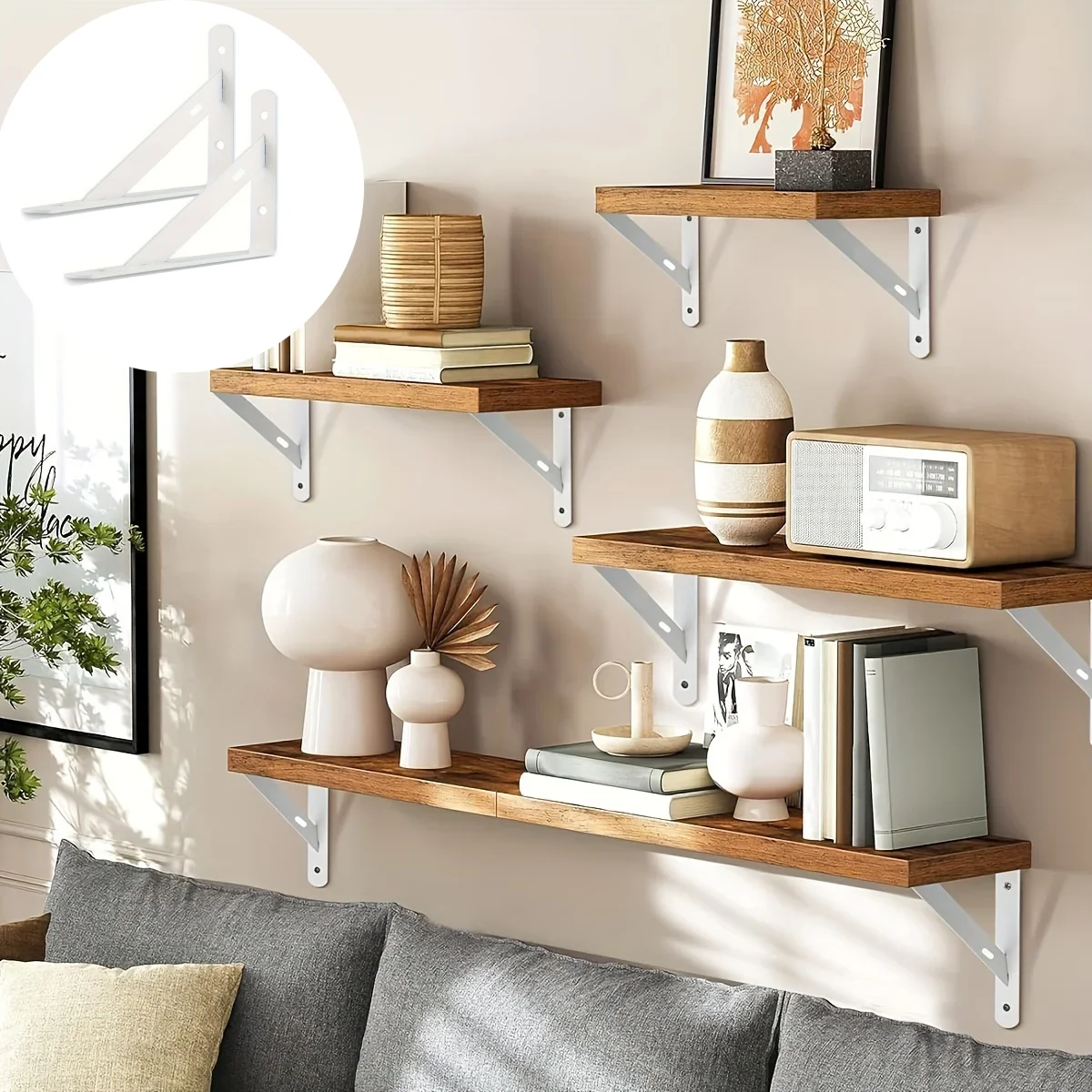 2pcs Wall Shelf Brackets Etagere Triangular Bracket Indoor Furniture Storage Shelf Wall Mounted Mult...