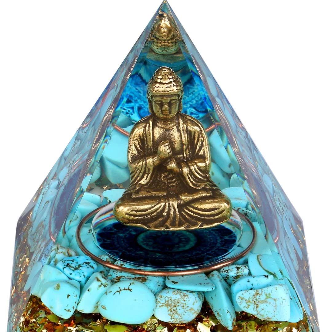 1pc Pyramid Crystals, Pyramid Ornament Buddha Statue Gravel Resin, Rockcloud Buddha Statue Orgone Py...