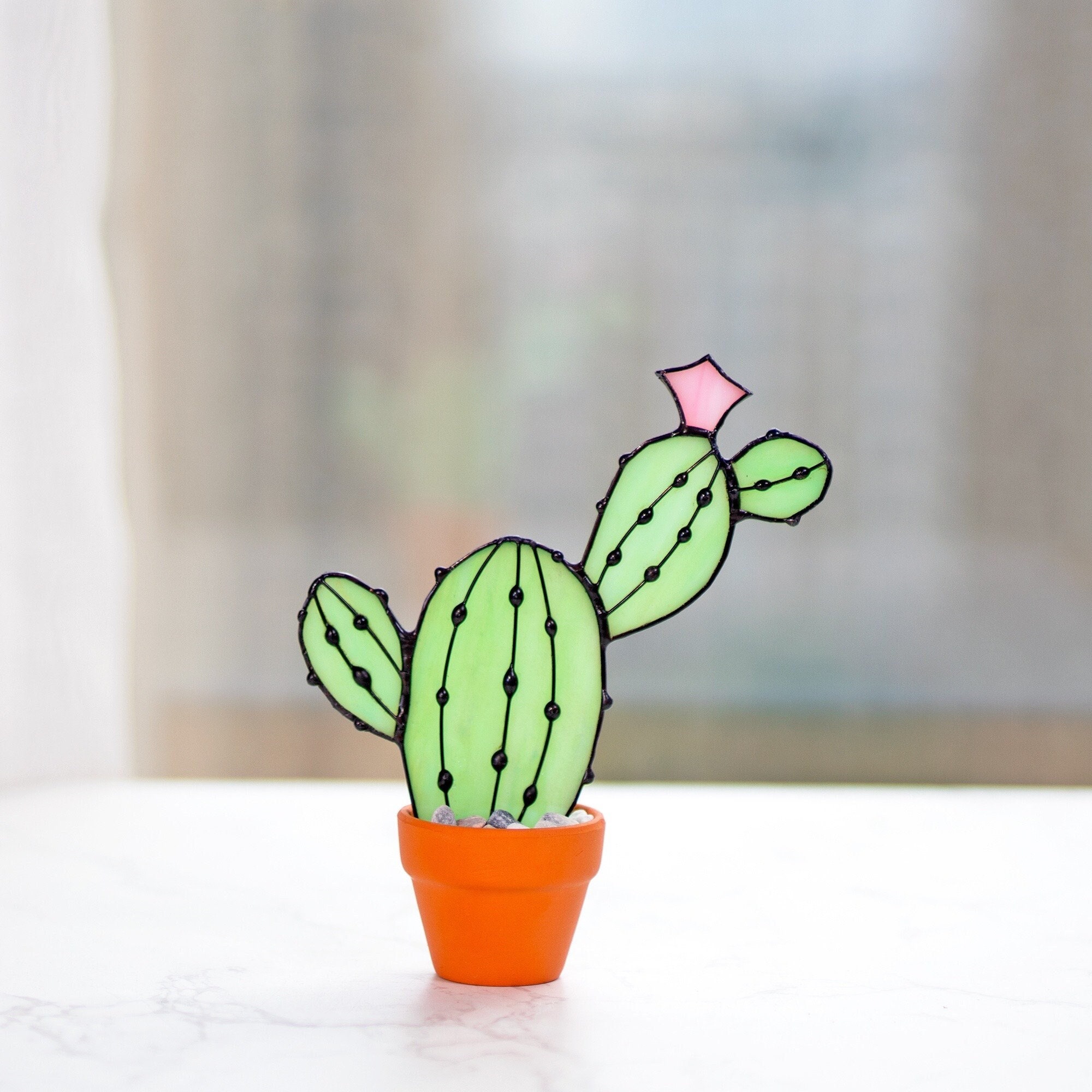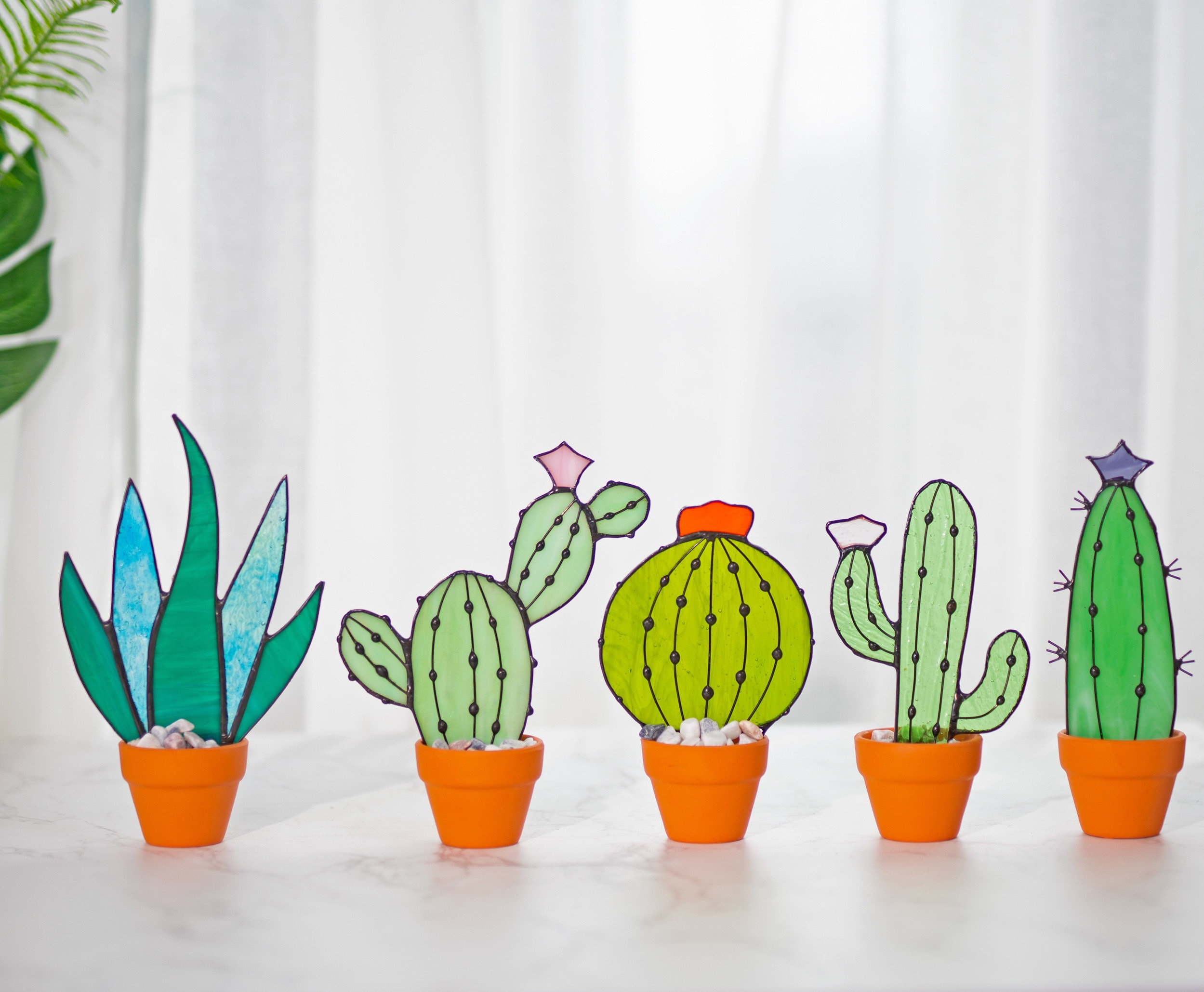 Cactus Plant Stained Glass Succulents Plants Suncatcher Cactus Deco...