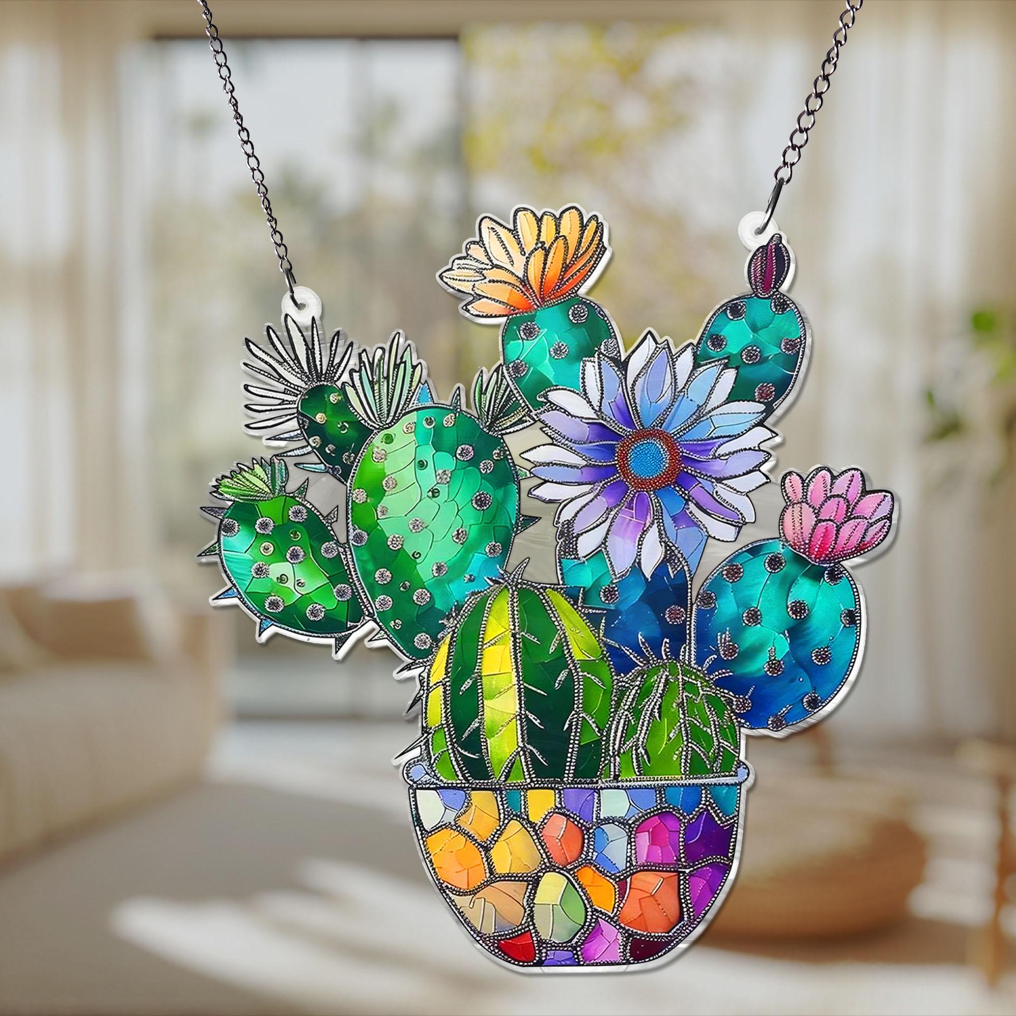 Bring the charm of the desert to your home with this vibrant acrylic cactus window hanging decor. Pe...