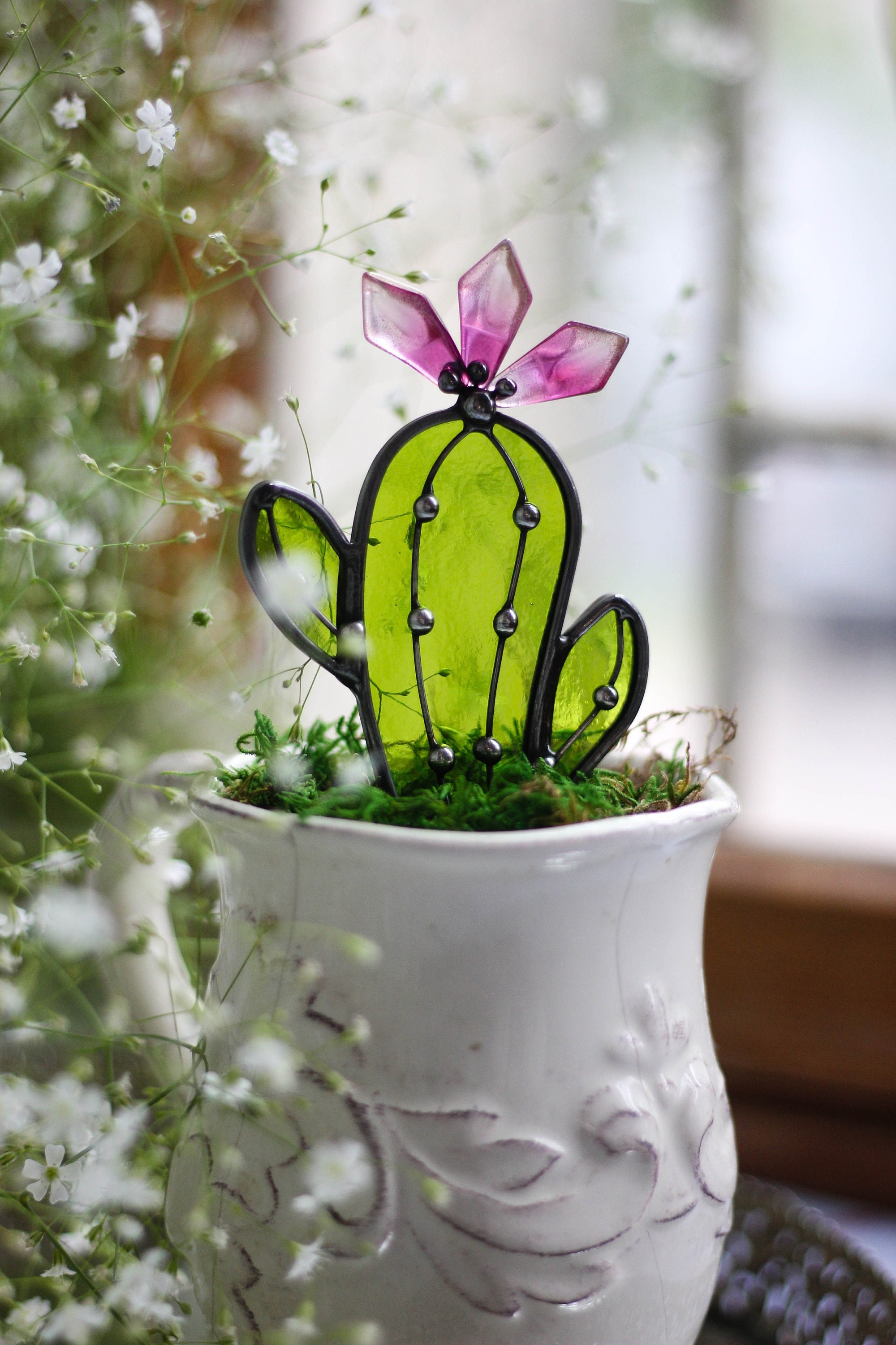 Cactus Plant Stained Glass Succulents Plants Suncatcher Cactus Deco...