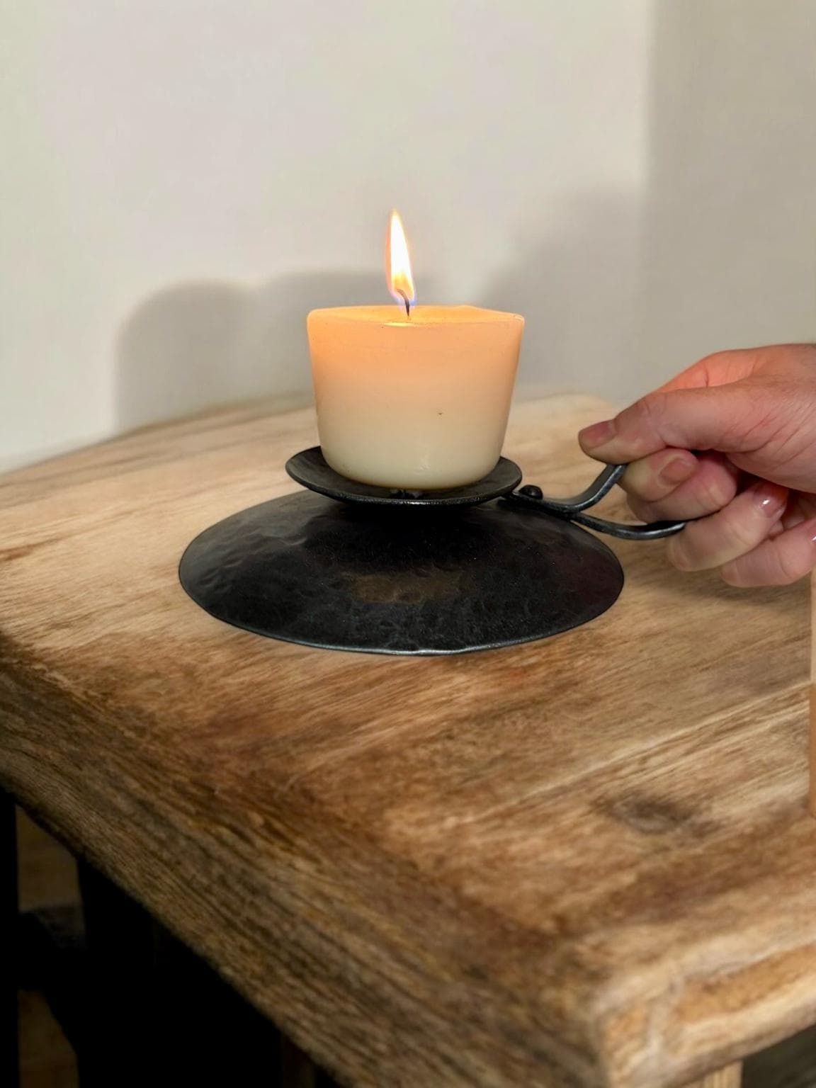 Bring timeless warmth and character into your space with this hand-forged wrought iron candle holder...