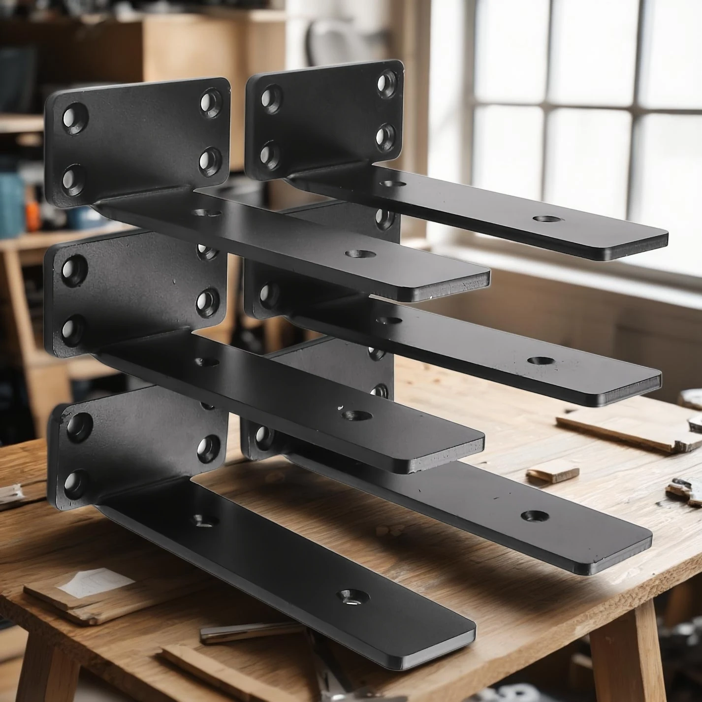 6 pieces of heavy-duty floating shelf bracket, metal wall mounted cast iron shelf bracket, black coa...