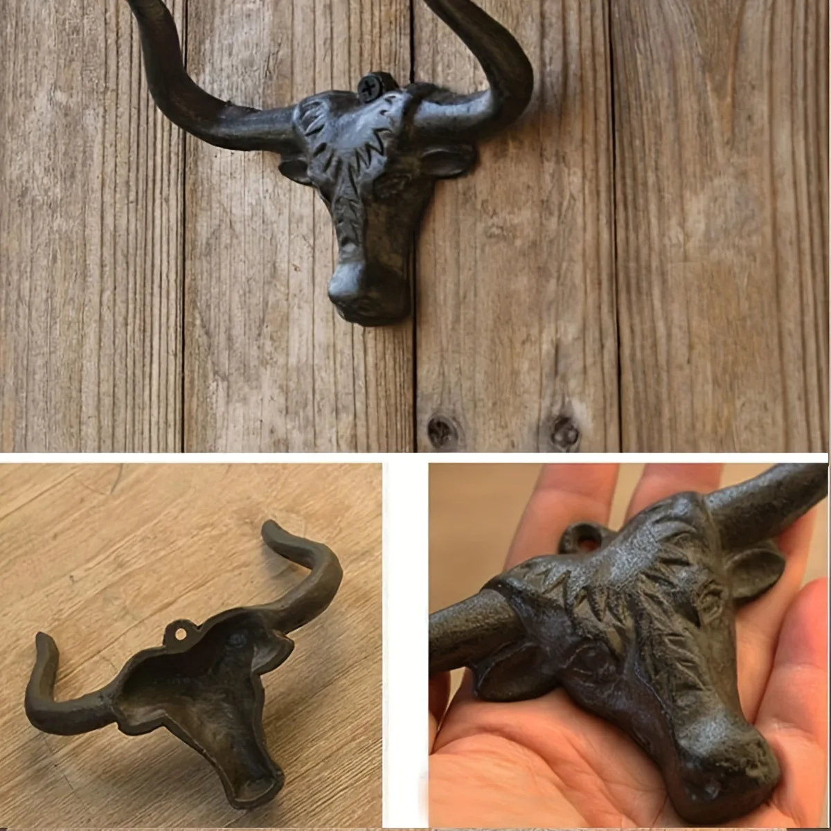 Cast iron Decorative hooks Bull Head figure Wall mounted vintage Ho...