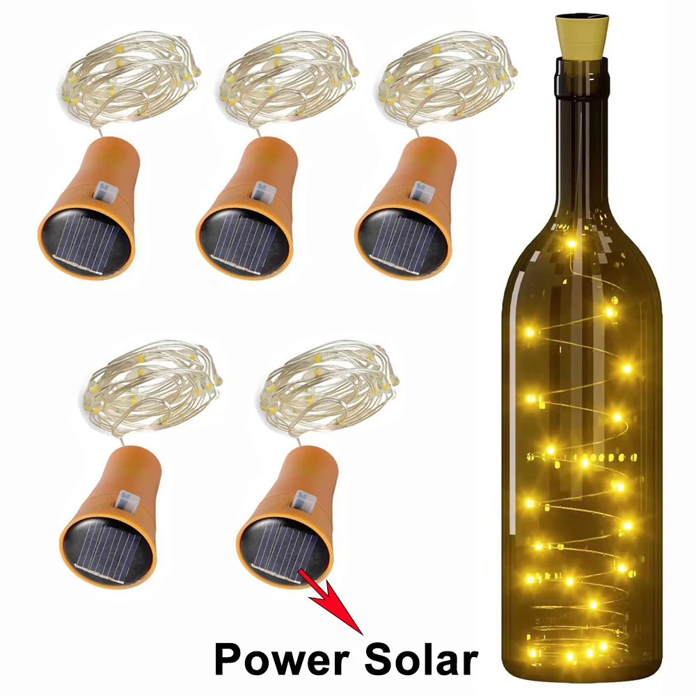 10/20LEDs Solar Wine Bottle String Light Solar Copper Wire Fairy Lights Cork Shape Christmas Lamp Fo...