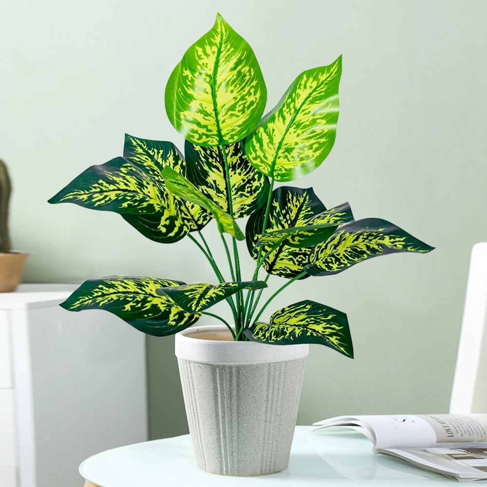 43cm 12 Leaves Artificial Monstera Tree Branch Fake Evergreen Plant...