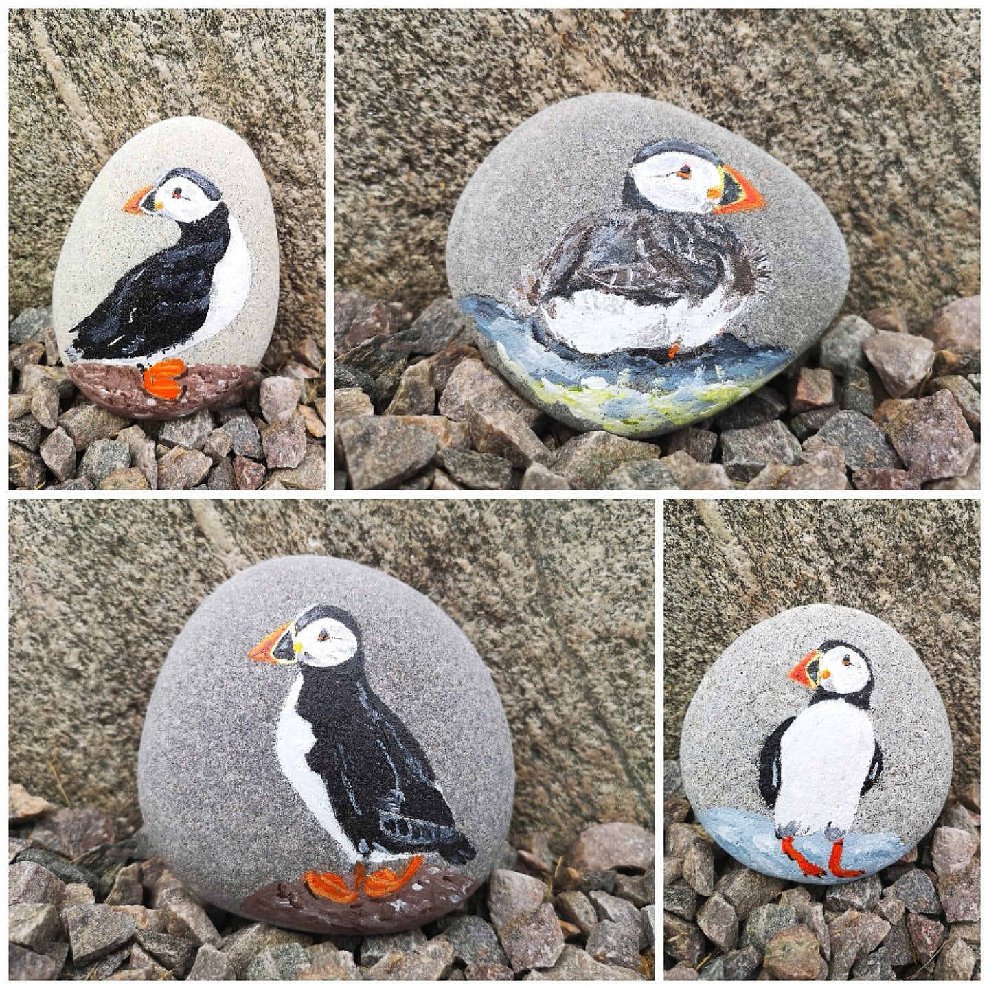 Painted Stones, Painted Puffin Stones, Painted Rocks, Painted Bird ...