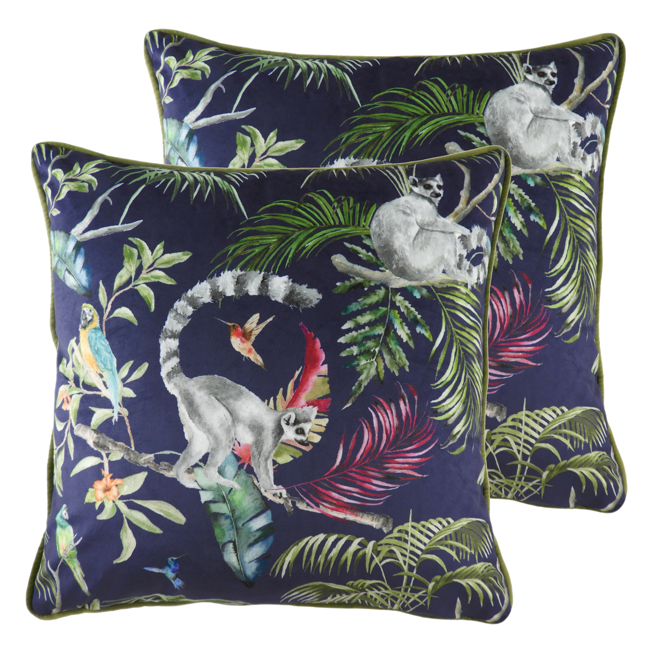 Evans Lichfield Jungle Lemur Cushions (twin Pack) - Blue - Size 43 ...