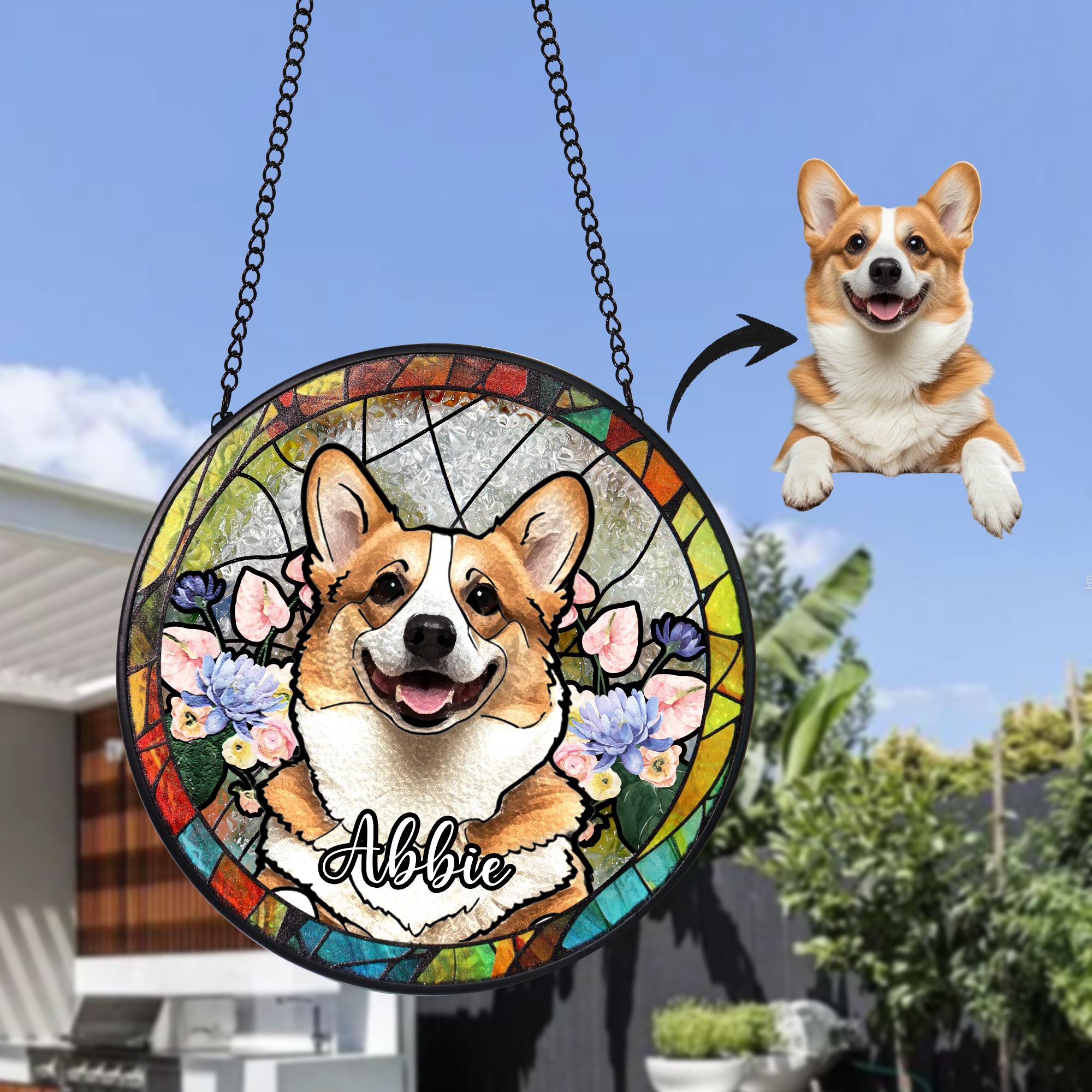 Personalized Pet Portrait Stained Glass Suncatcher,Custom Dog Memorial Gifts, Custom Dog Portrait fr...