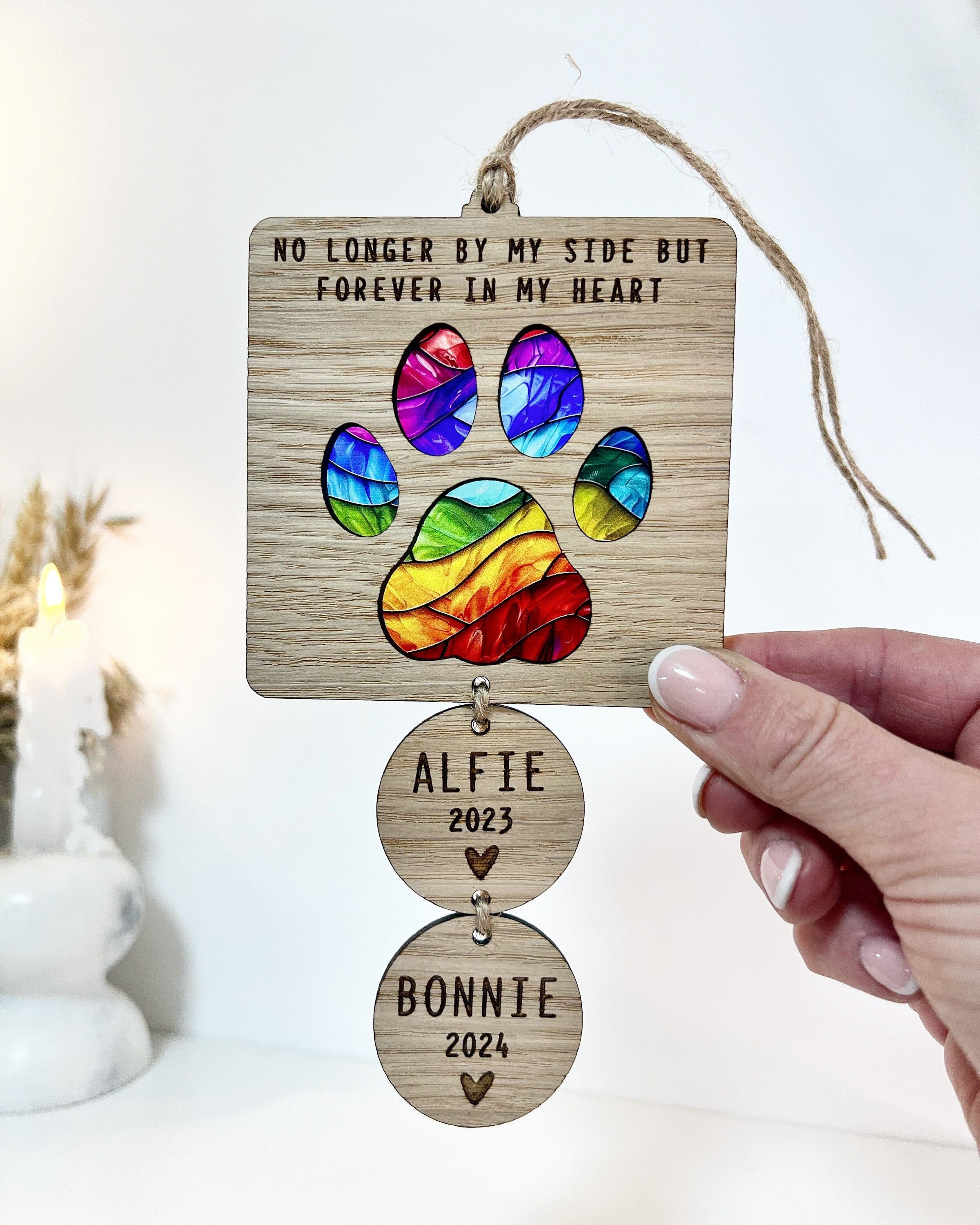 "Honor the memory of your beloved furry friend with our Dog Memorial Sun Catcher. Losing a pet ...