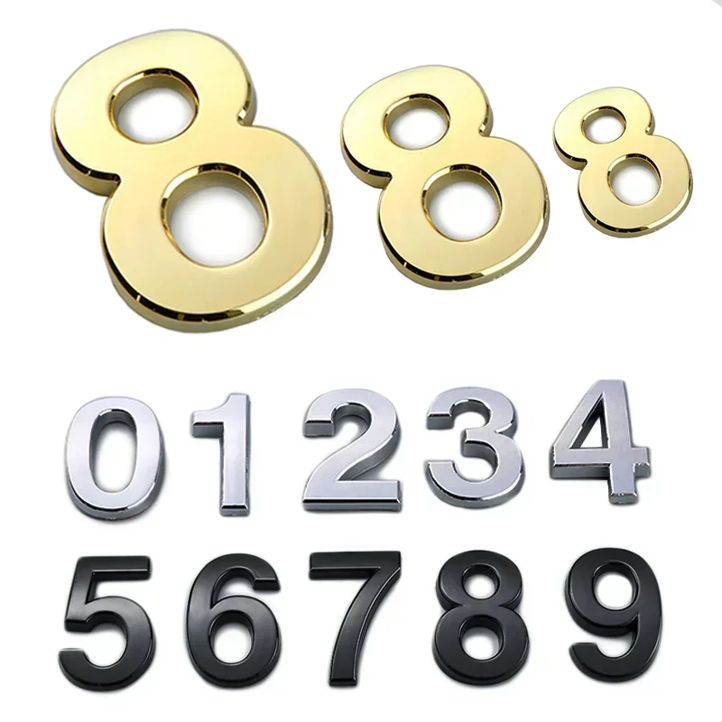 Brass House Number Self-Adhesive 3D Door Numbers Hotel Home Sticker Address Mailbox Numbers #0-9 Hom...