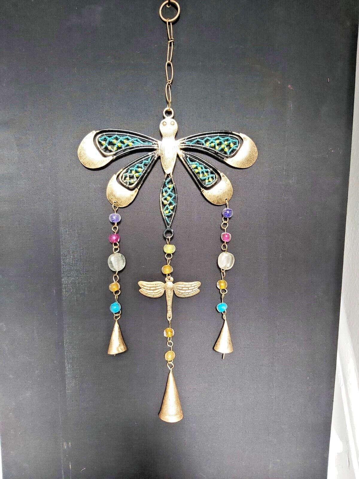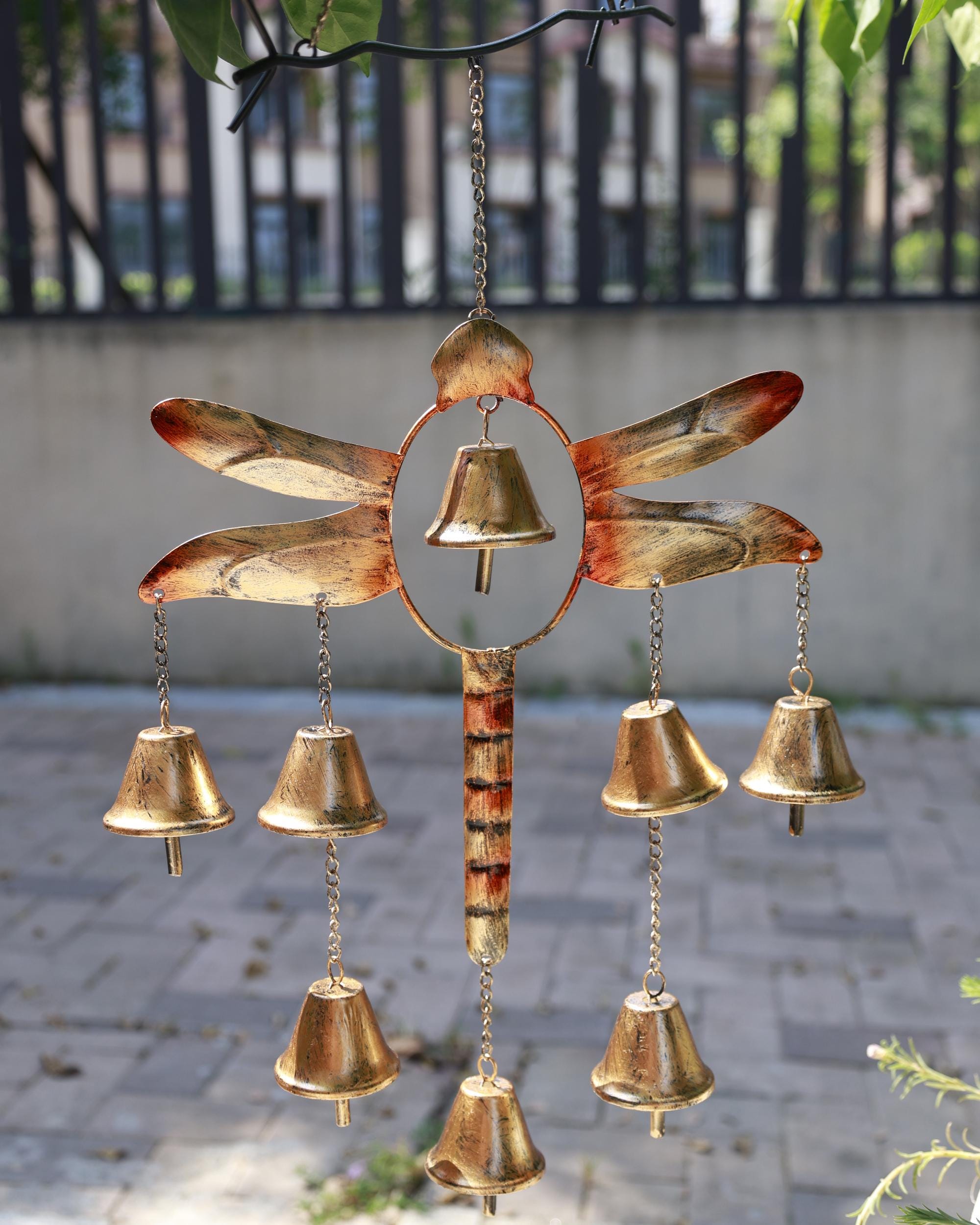 Handmade Indian Recycled Iron Hanging Dragonfly Windchime/Mobile wi...