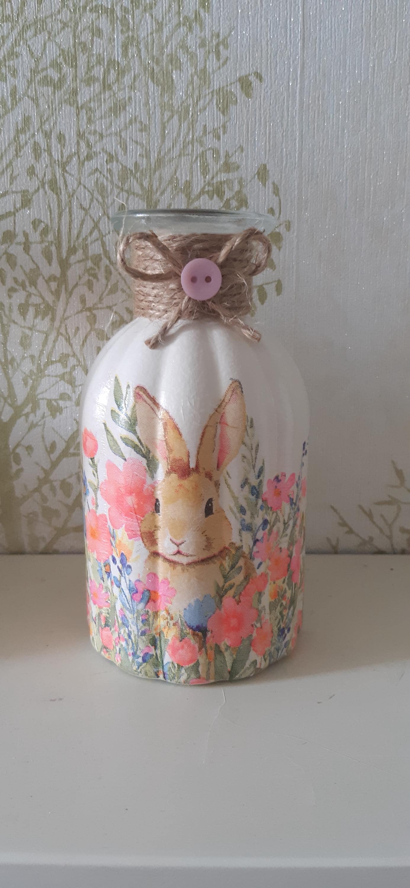 This cute little bud vase is hand painted then decoupaged with a lovely rabbit design. Perfect for s...