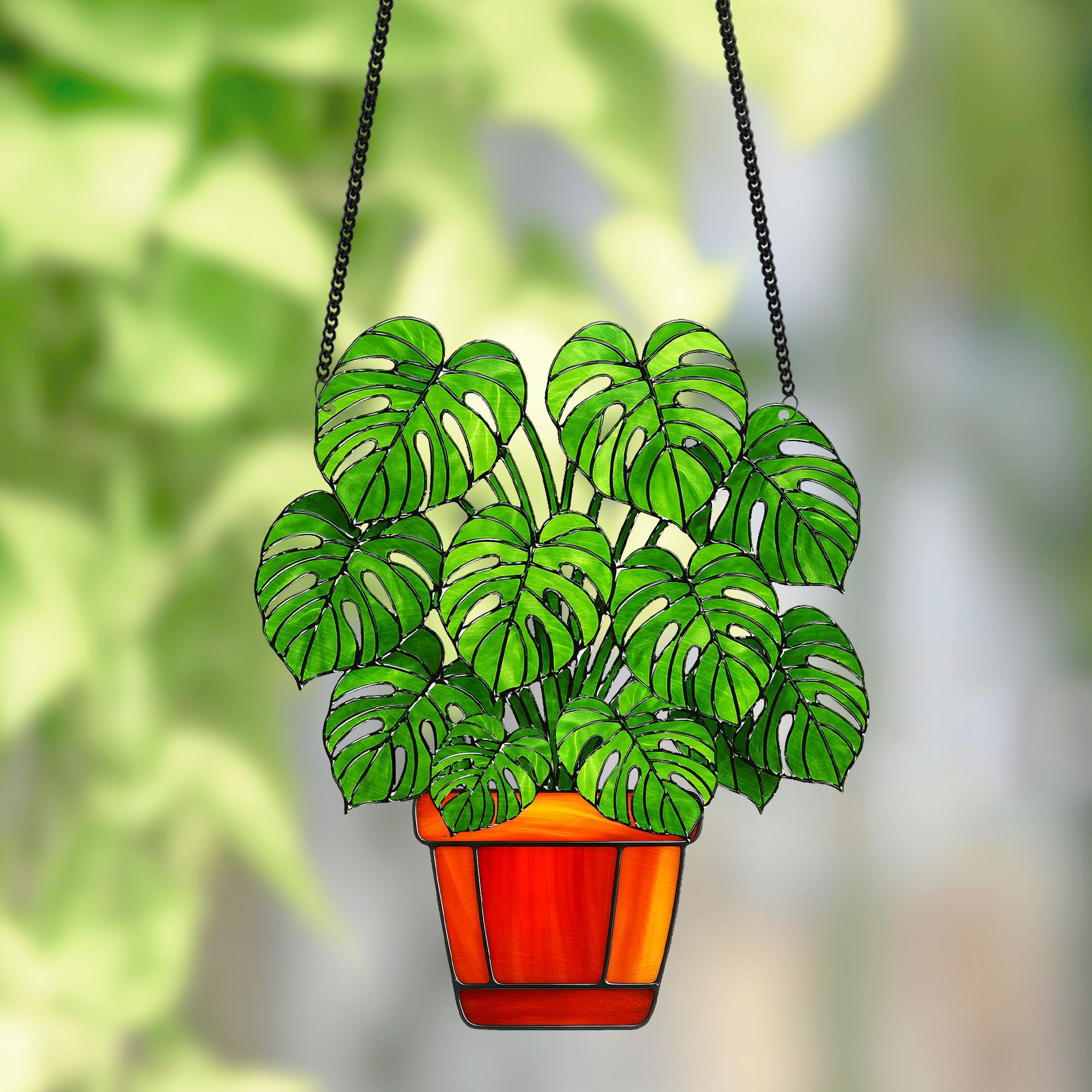 "Monstera Leaves Acrylic Suncatcher Window Decor,Plant Garden Hanging Decor,Faux Stained Glass ...