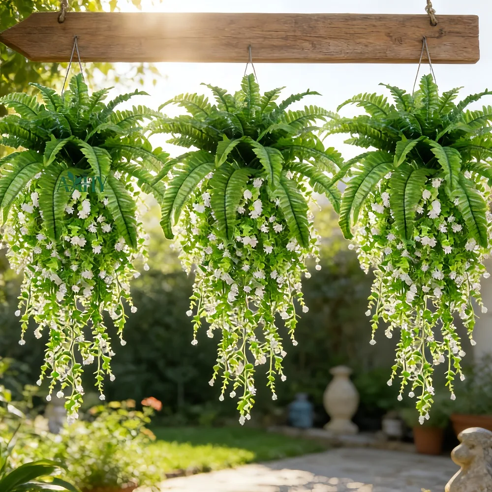 2/4pcs Artificial Hanging Plants UV Resistant Plastic Fake Hanging Plant Home Office Wall Decoration...