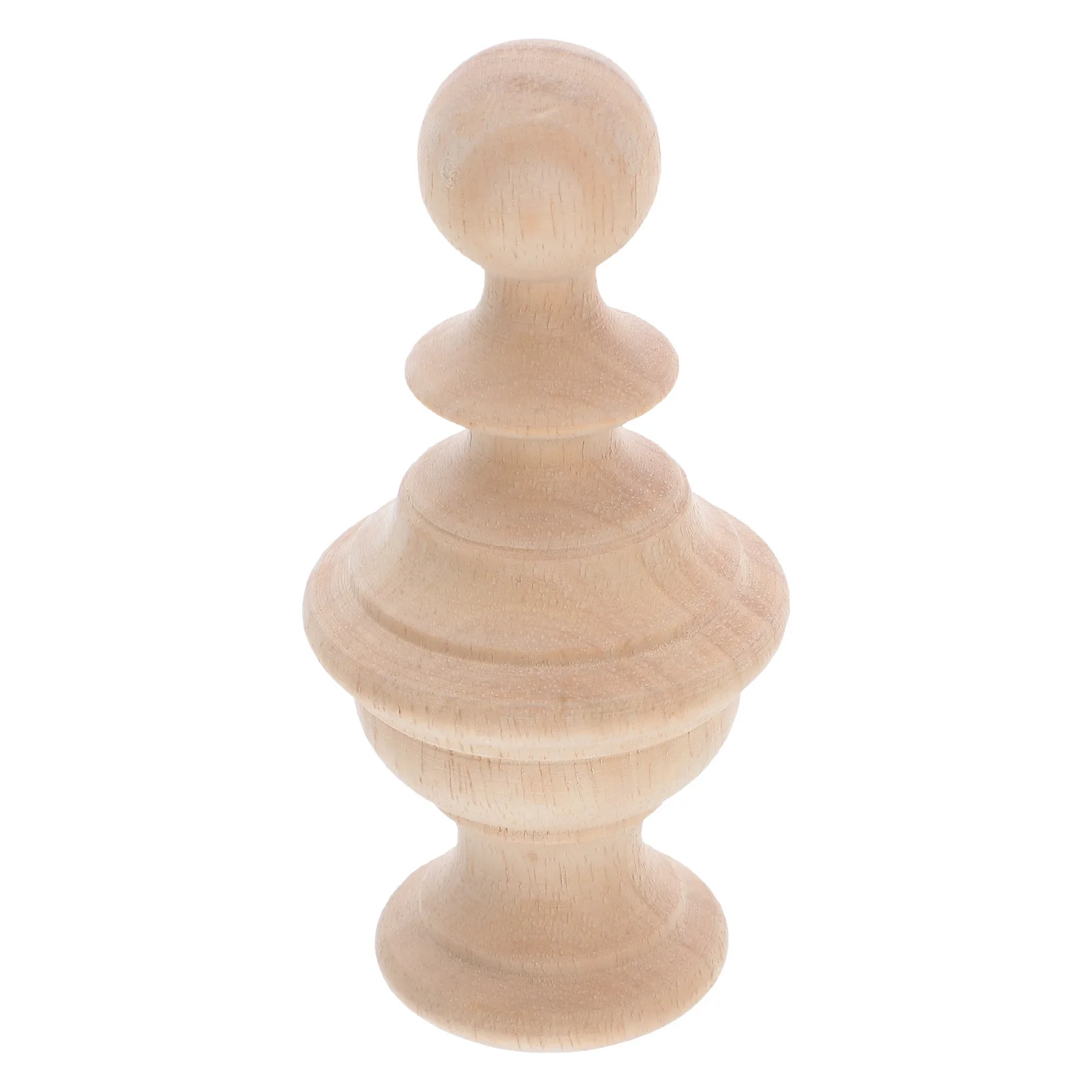 Set of 4 Unfinished Wooden Finials Hand Carved Solid Wood Topper for DIY Crafts Stair Railings Bed P...