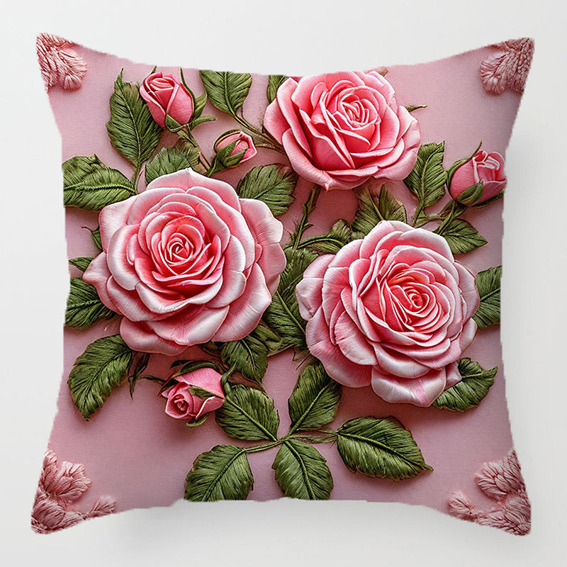 Floral Embroidery Style 2D Flat Print Decorative Pillow Cover Soft ...