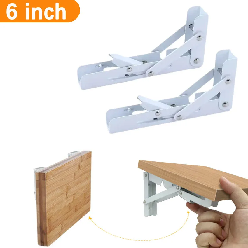 White 6 Inch Folding Shelf Brackets Metal Collapsible Wall-Mounted ...