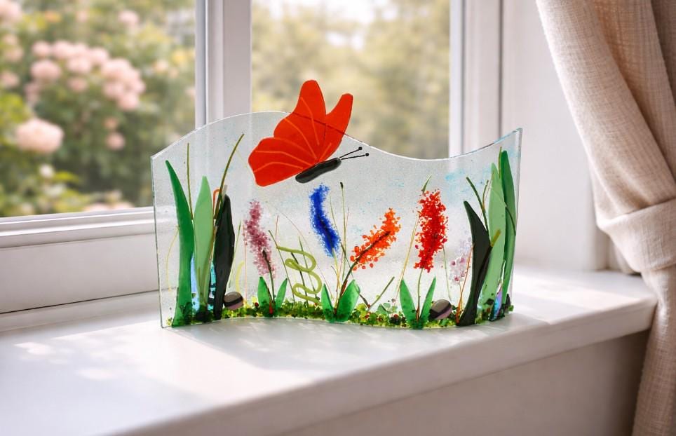 Butterfly Garden scene in fused glass. Free standing unique handmad...