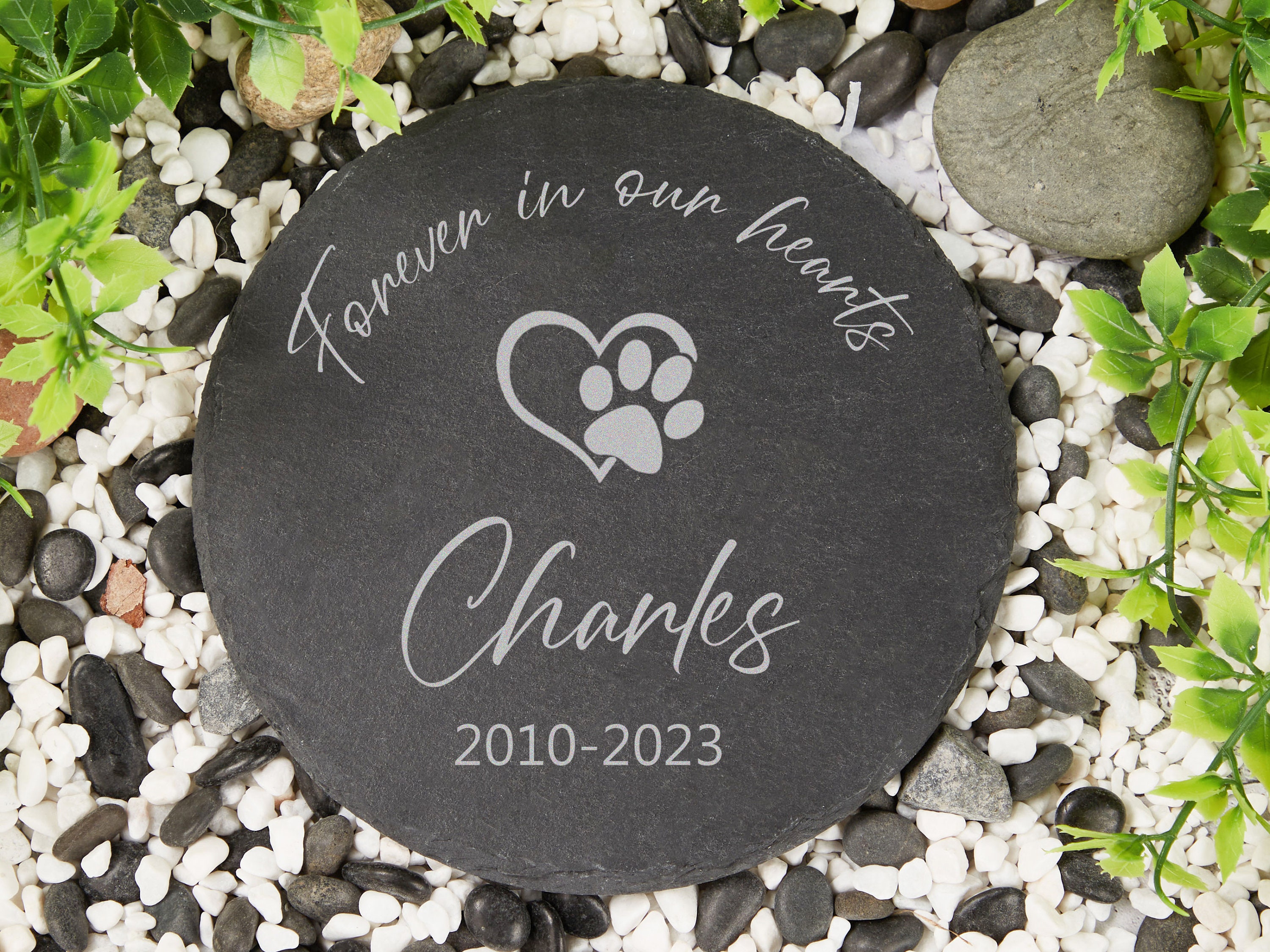 A perfect eco-friendly gift to remember a loved pet. A paw-print and then your chosen name engraved ...