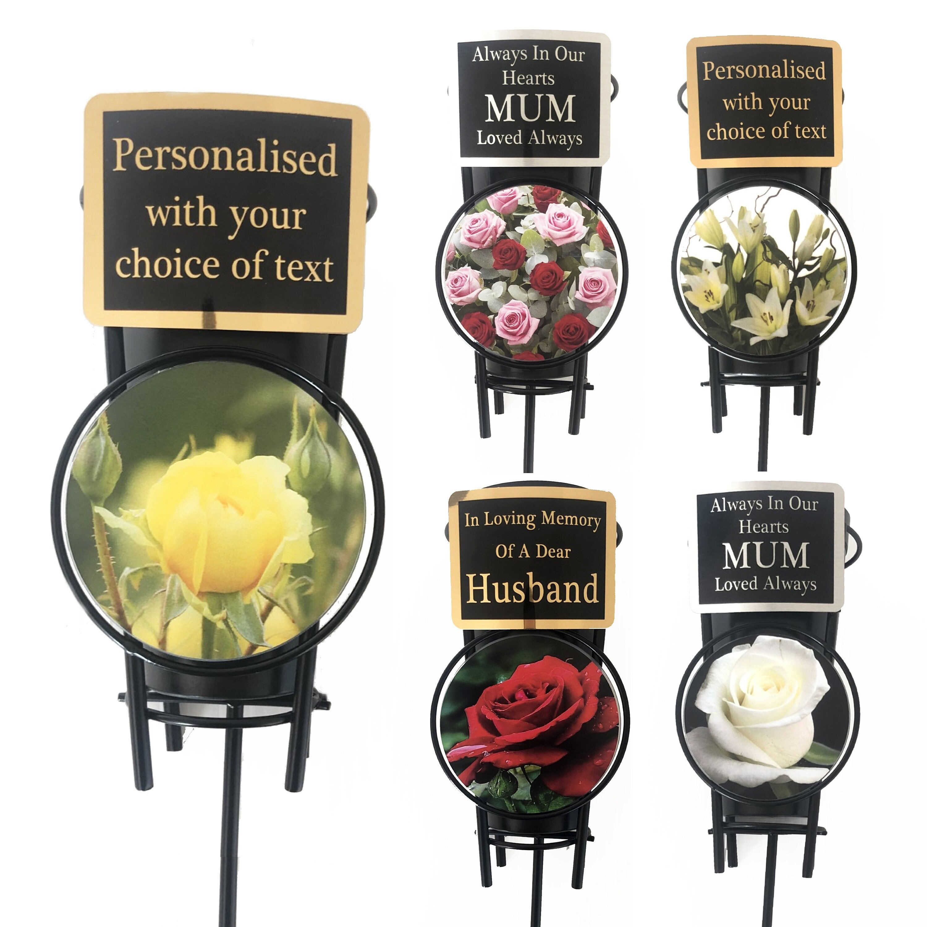 Personalised Metal Memorial Spike Vases 5 Flower Designs To Choose From Decorate your loved ones gra...
