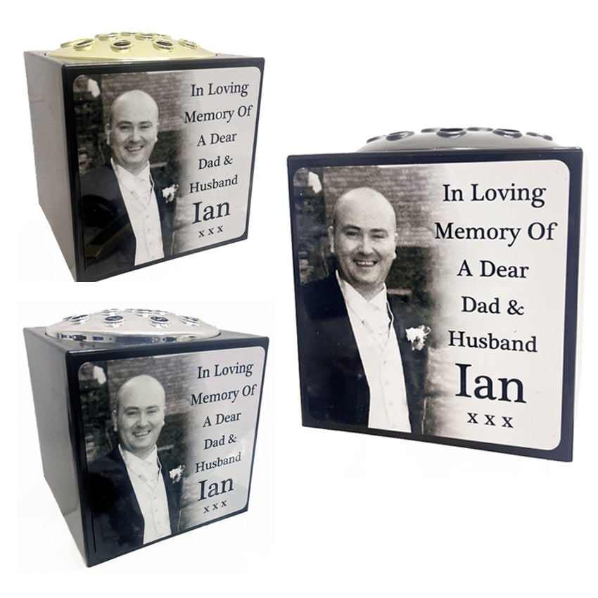 Personalised White Plastic Cube Photo Grave Vase Personalised plaques can have any photo, names, dat...