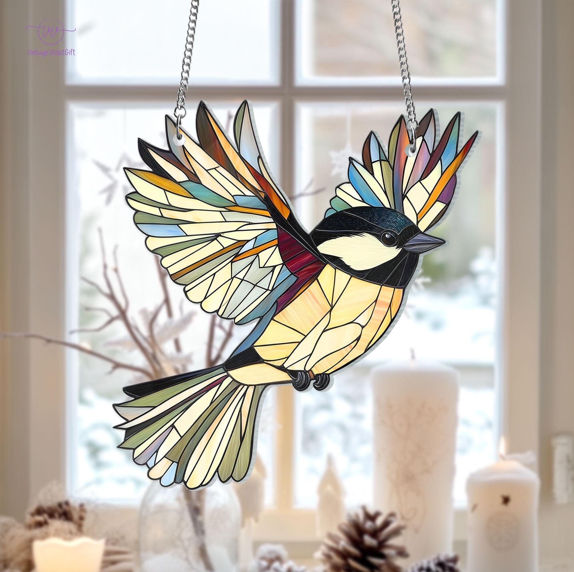 Chickadee ACRYLIC Window Hanging Decor, Bird Lovers Window Hangings...
