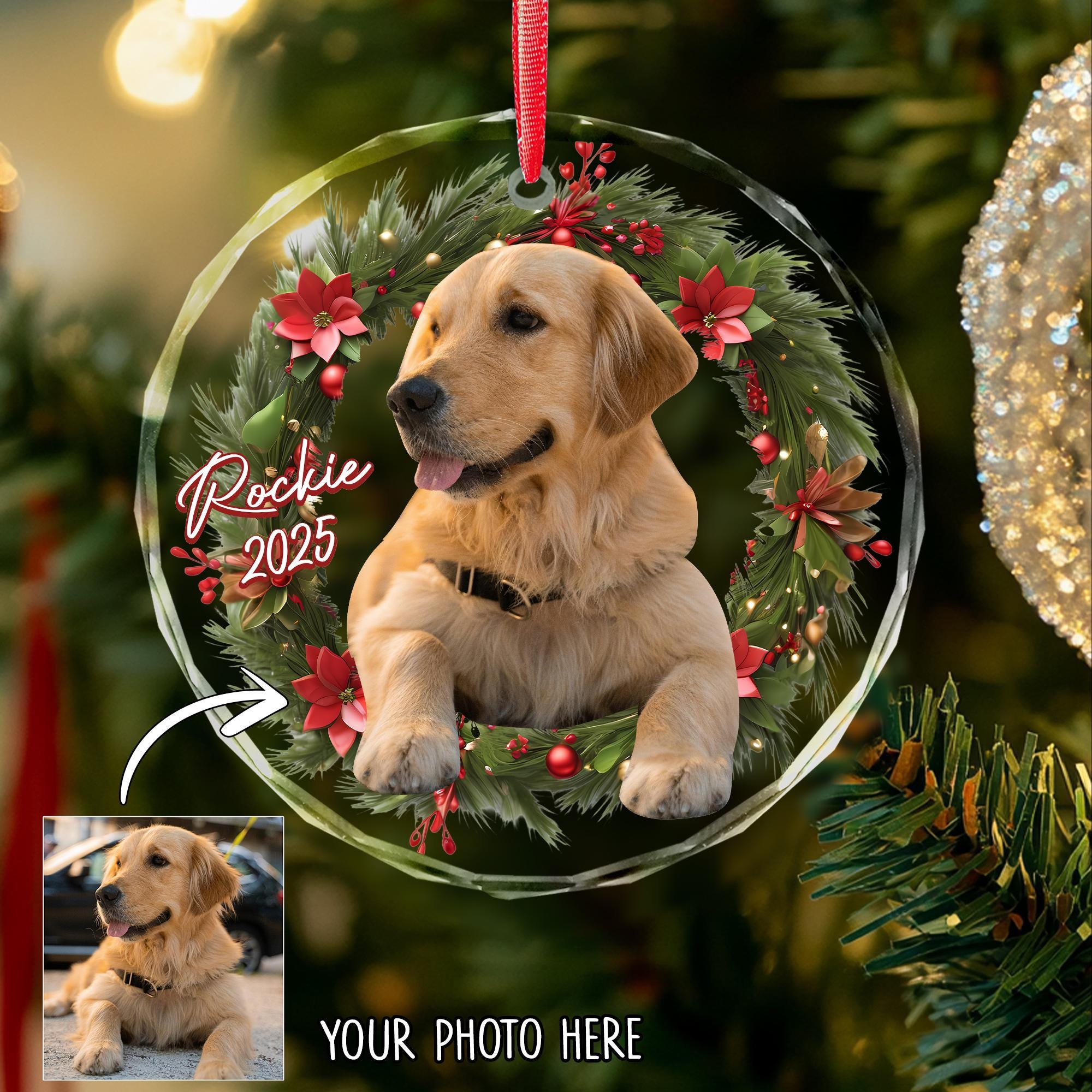 Personalized Dog Photo Ornament, Dog Portrait Gift, Custom Dog Chri...