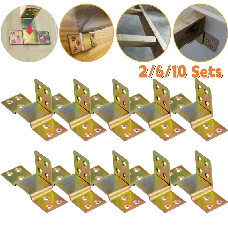 2/6/10 Sets Heavy-Duty Solid Wood Bed Frame Hardware Kit,Metal Bed Rail Brackets,Wooden Frames Corne...